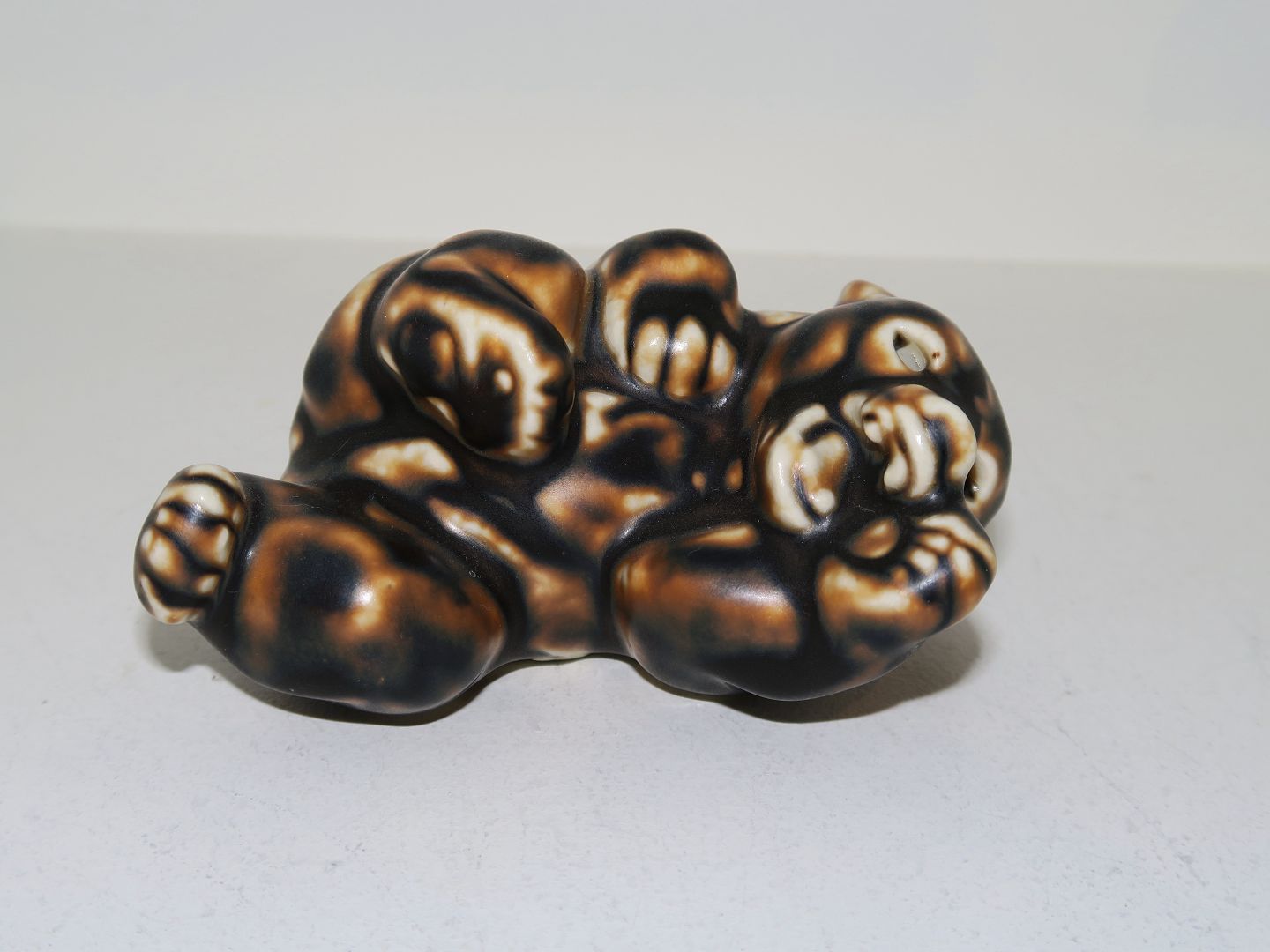 Royal Copenhagen brown stoneware figurine, small brown bear cub. Designed by artist Knud Kyhn. Decoration number 21432. Factory first. Length 9.8 cm. Perfect condition with no chips, cracks or repairs.