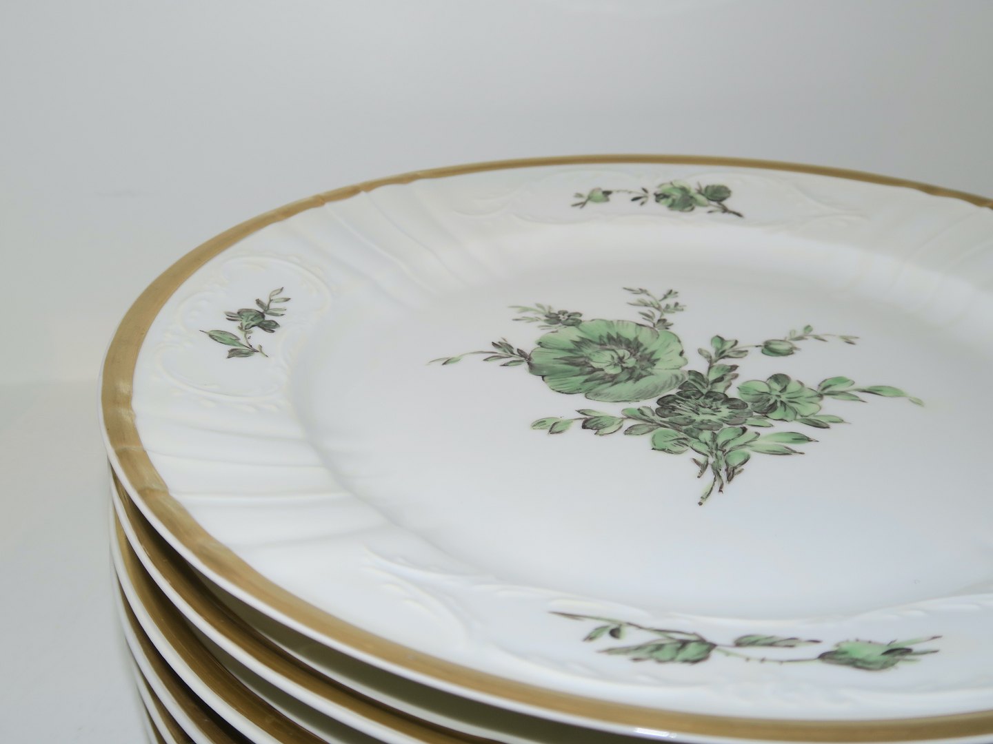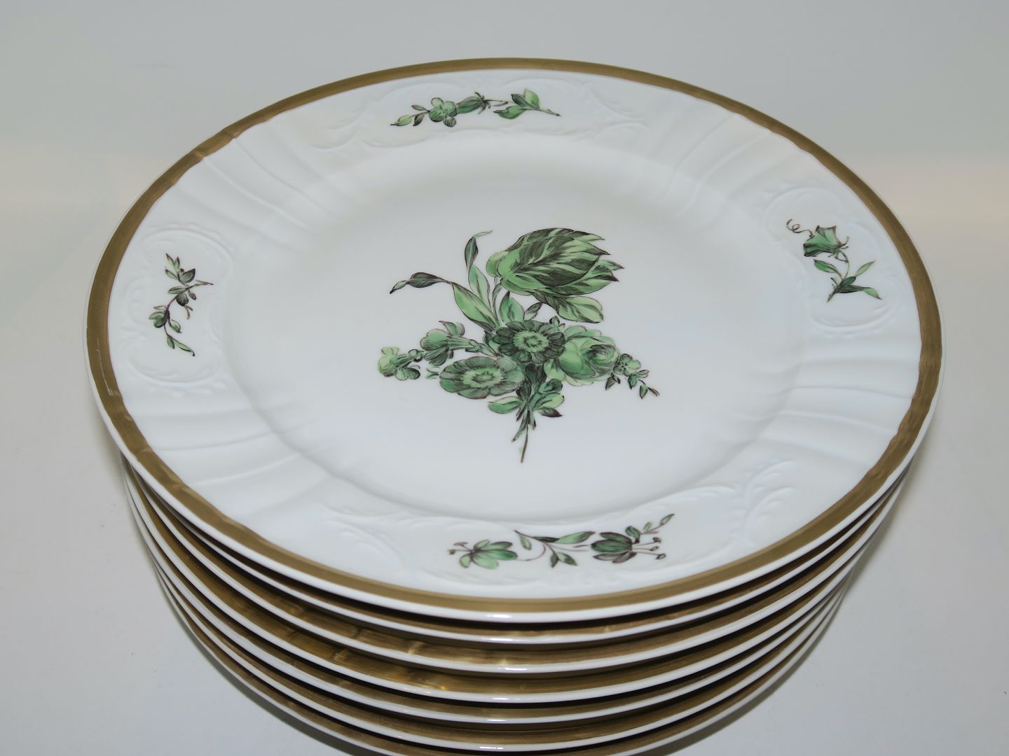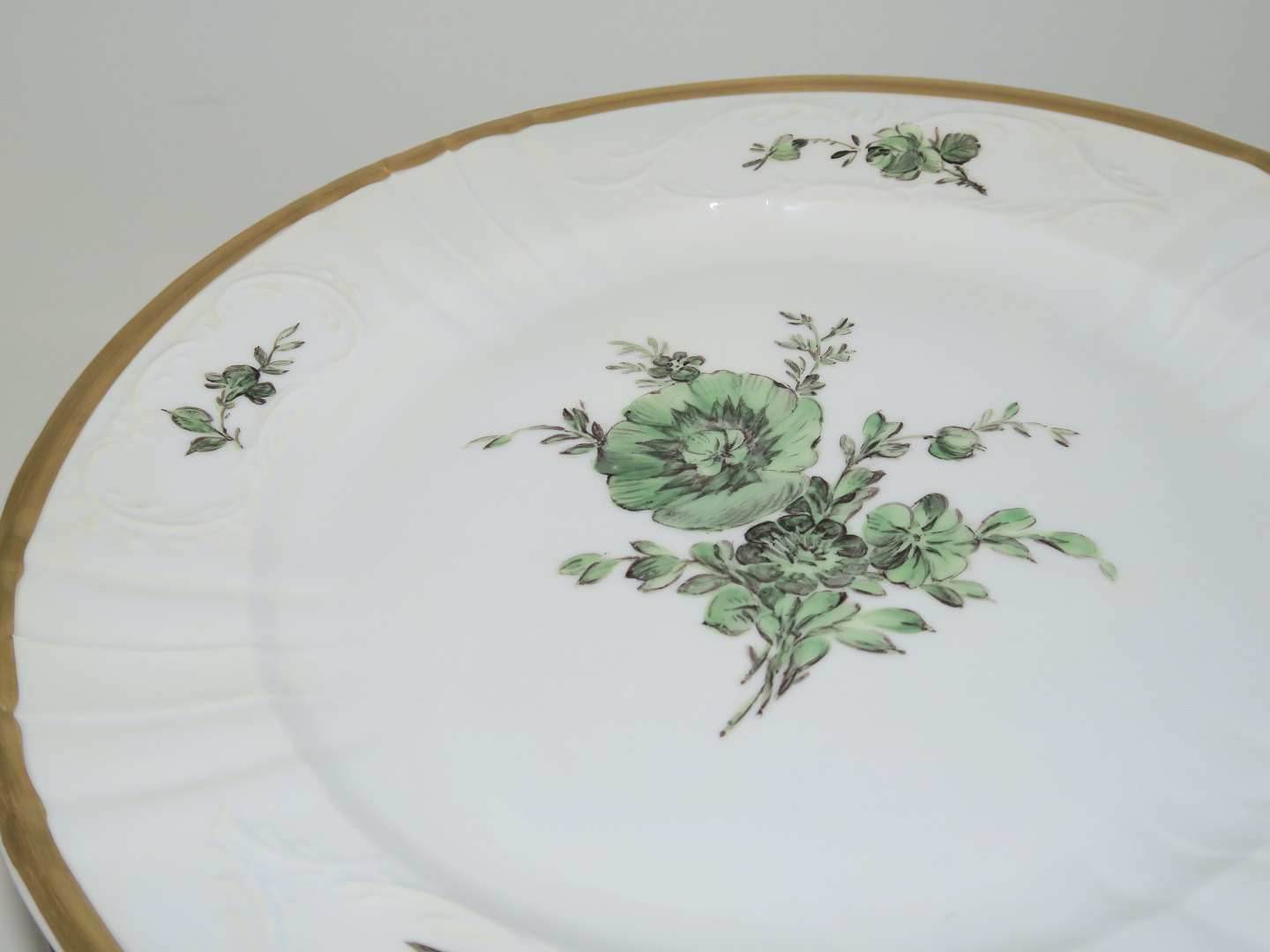 Royal Copenhagen Green Flower Juliane Marie with gold edge, dinner plate.