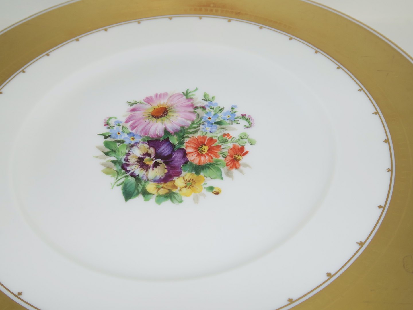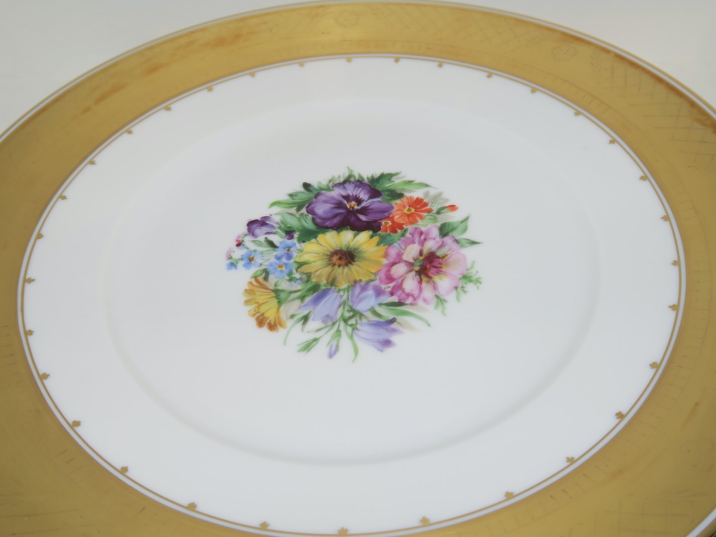 Royal Copenhagen Variant af Guldkurv, frokosttallerken med blomsterdekoration og bred guldkant.