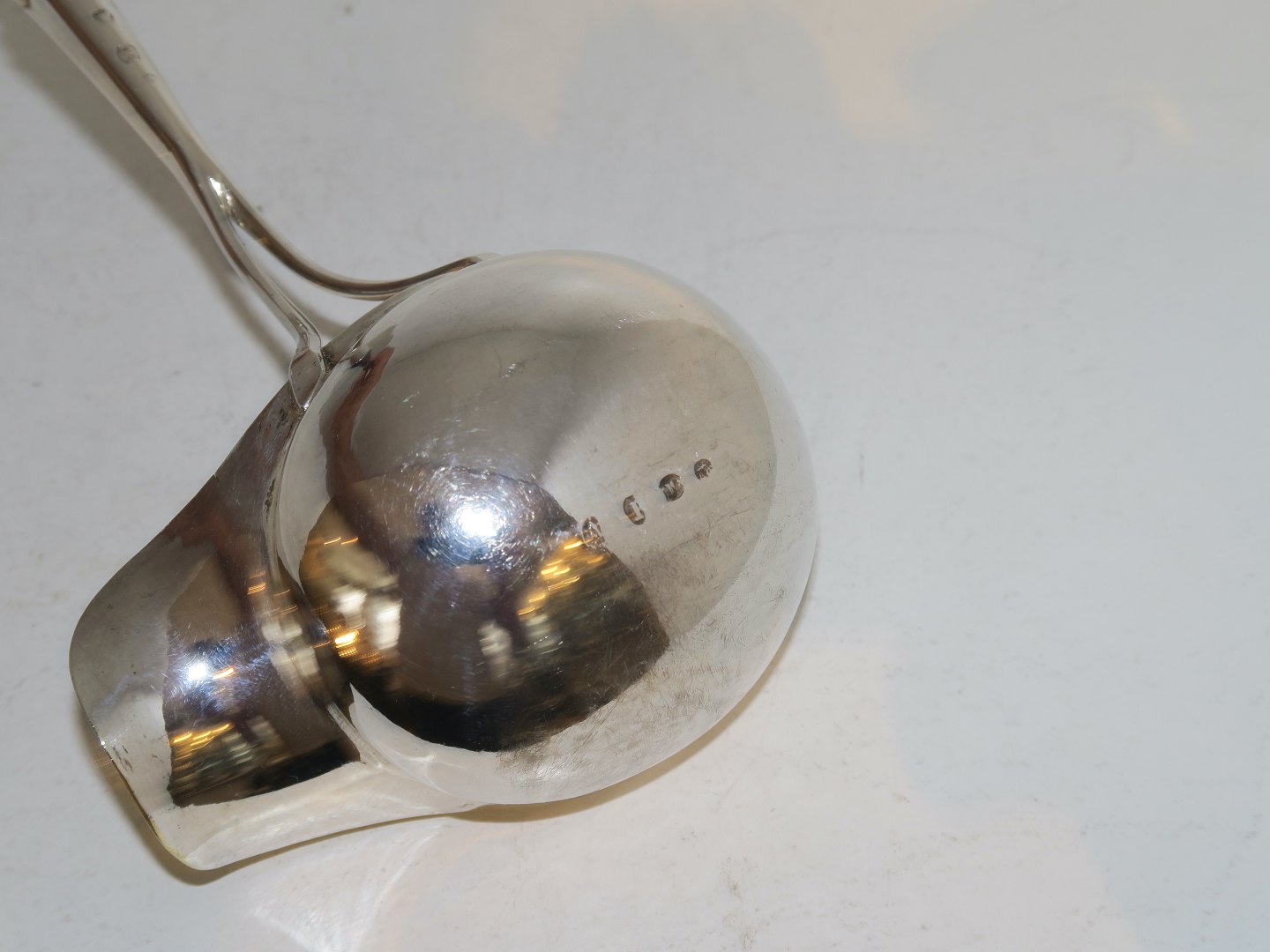 Heinrich Otto sølv, lang punchske med træskaft og forgyldt laf fra 1829.
