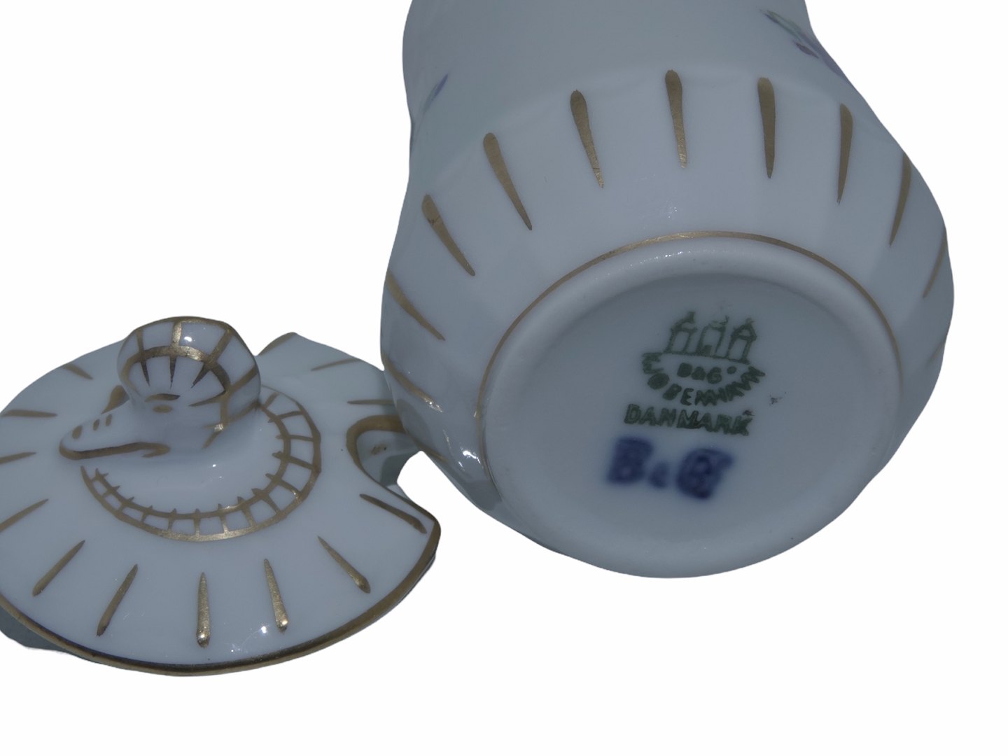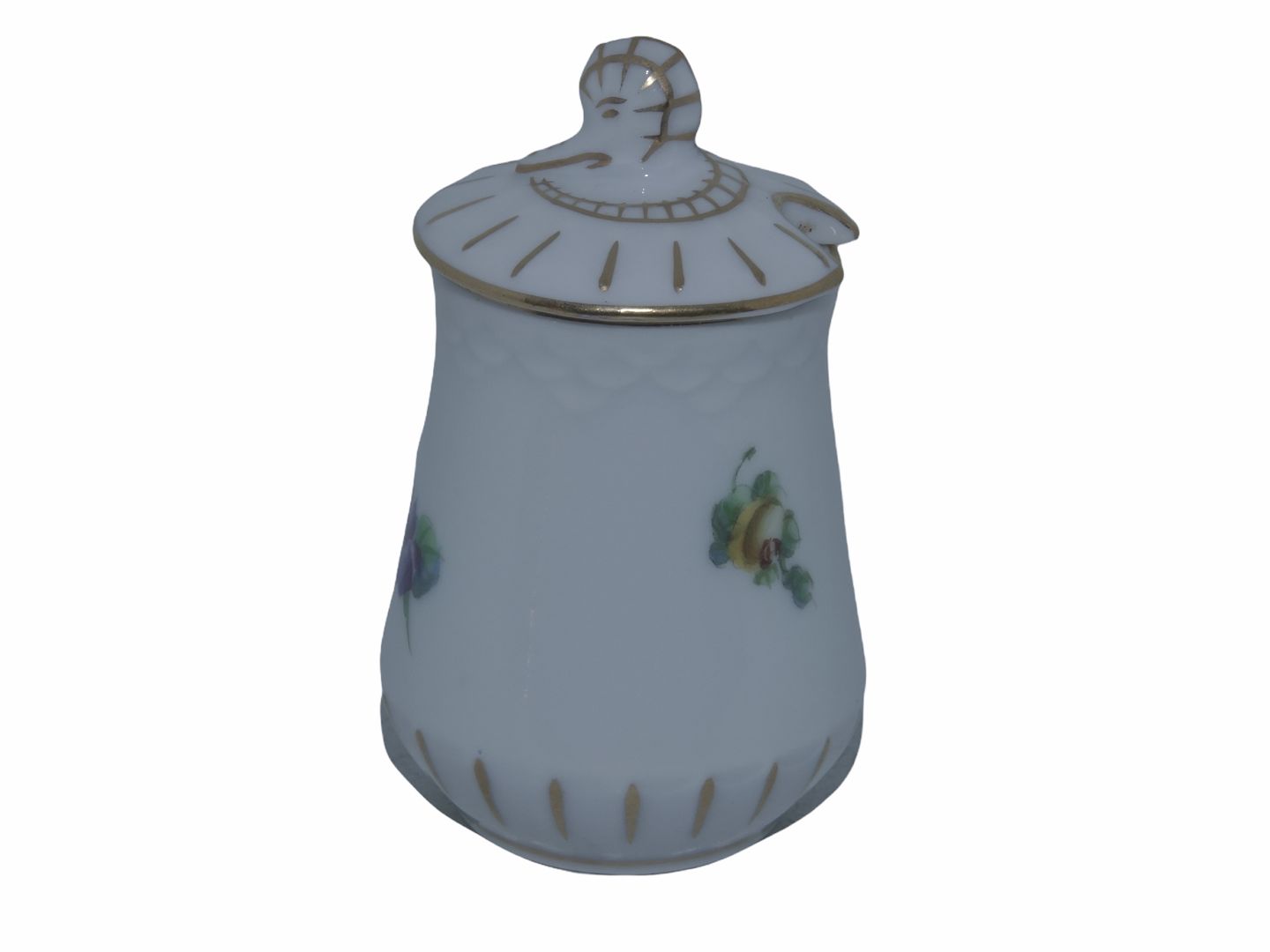 Bing & Grøndahl Saksisk Blomst på hvidt porcelæn, sennepskrukke.