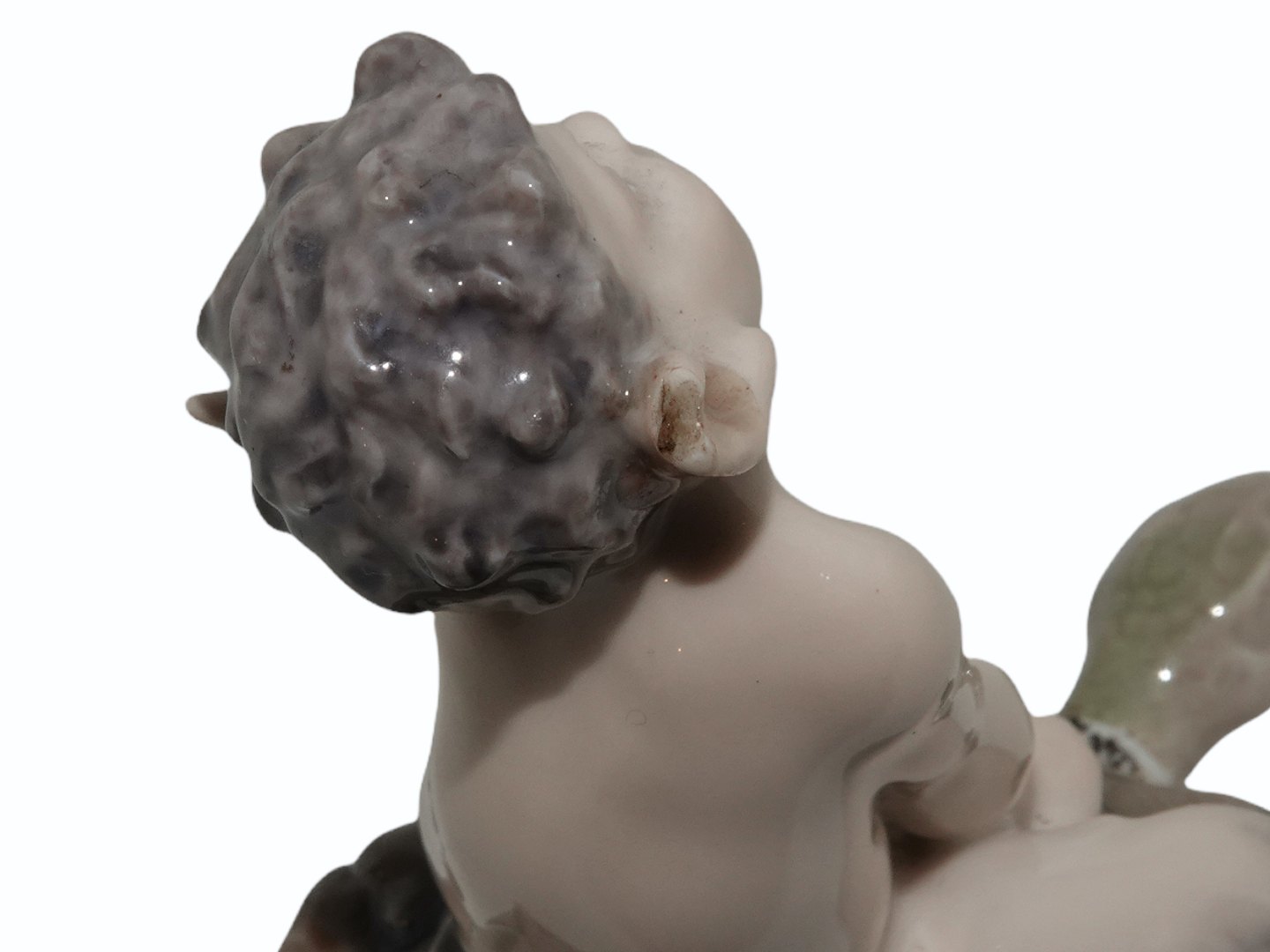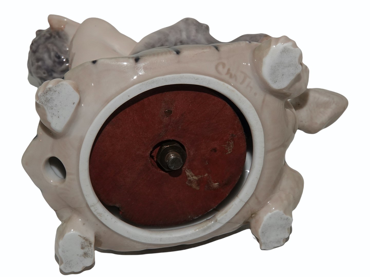 Klokkefunktionen virker ikke og der er skår på et af ørerne. Endvidere er der hårrevner på bunden samt en gammel reparation på et af benene på skildpadden.