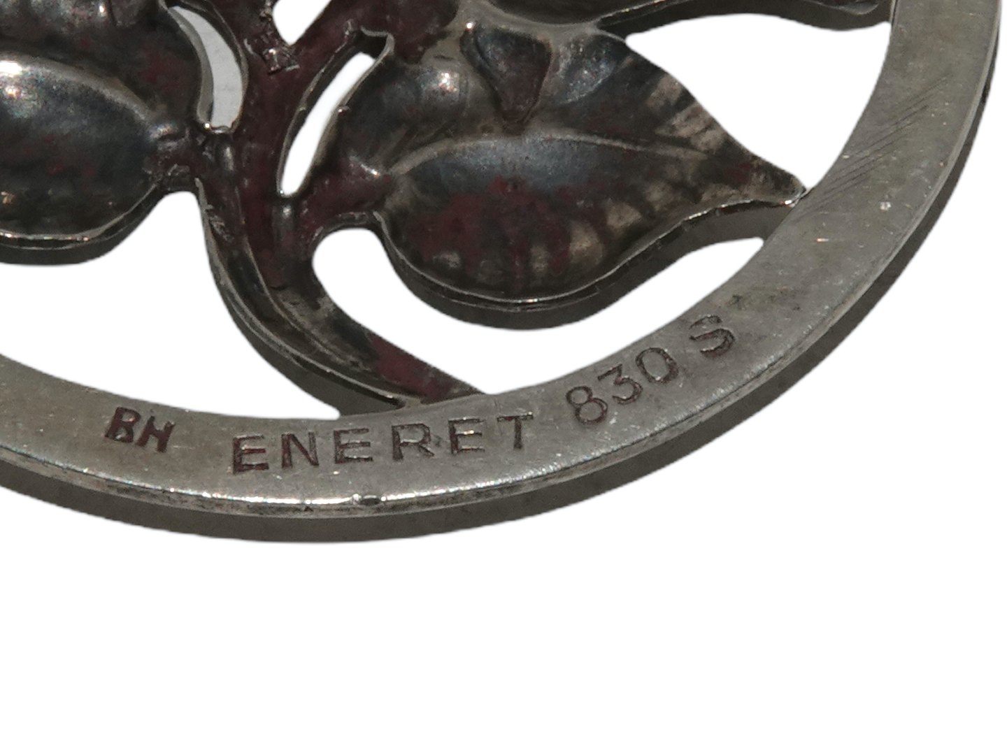 Hallmarked "B.H. ENERET 830S". Bernhard Hertz was a silversmith in Copenhagen from 1899 and the business stopped in 2007.