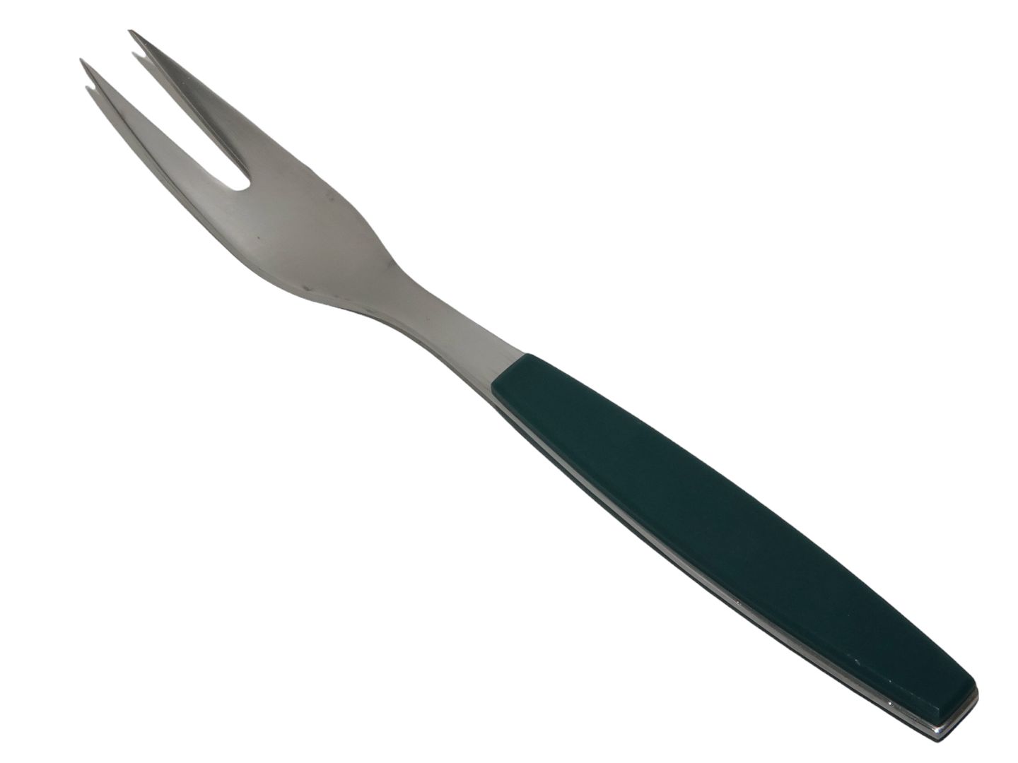 Georg Jensen Grøn Strata, stegegaffel. Designet af Henning Koppel i 1975. Rustfrit stål og skaft af plast. Længde 18,4 cm. Perfekt stand.