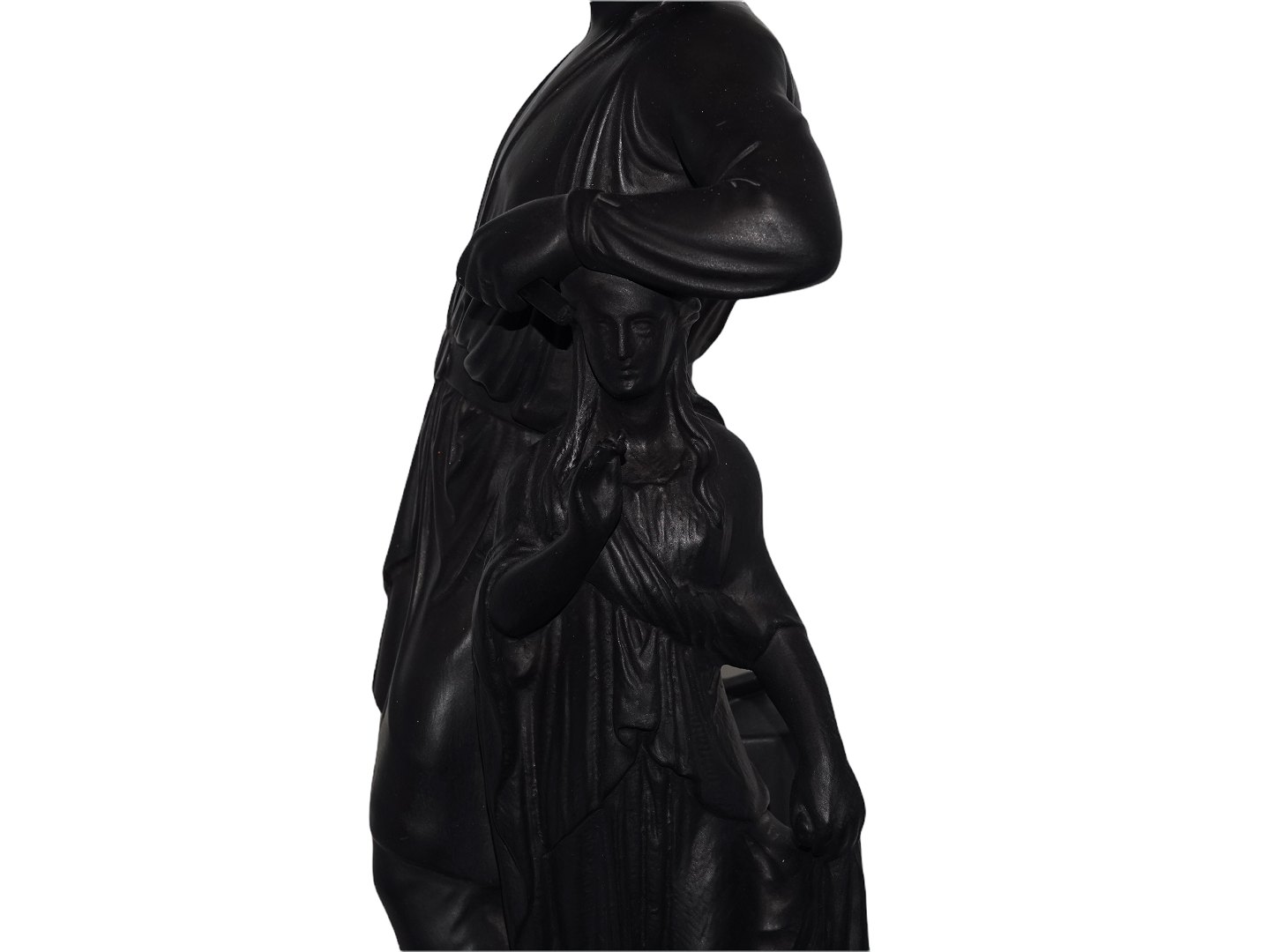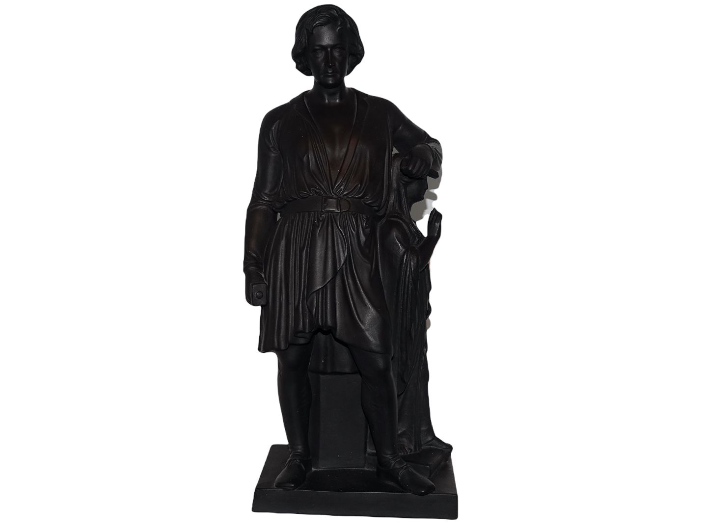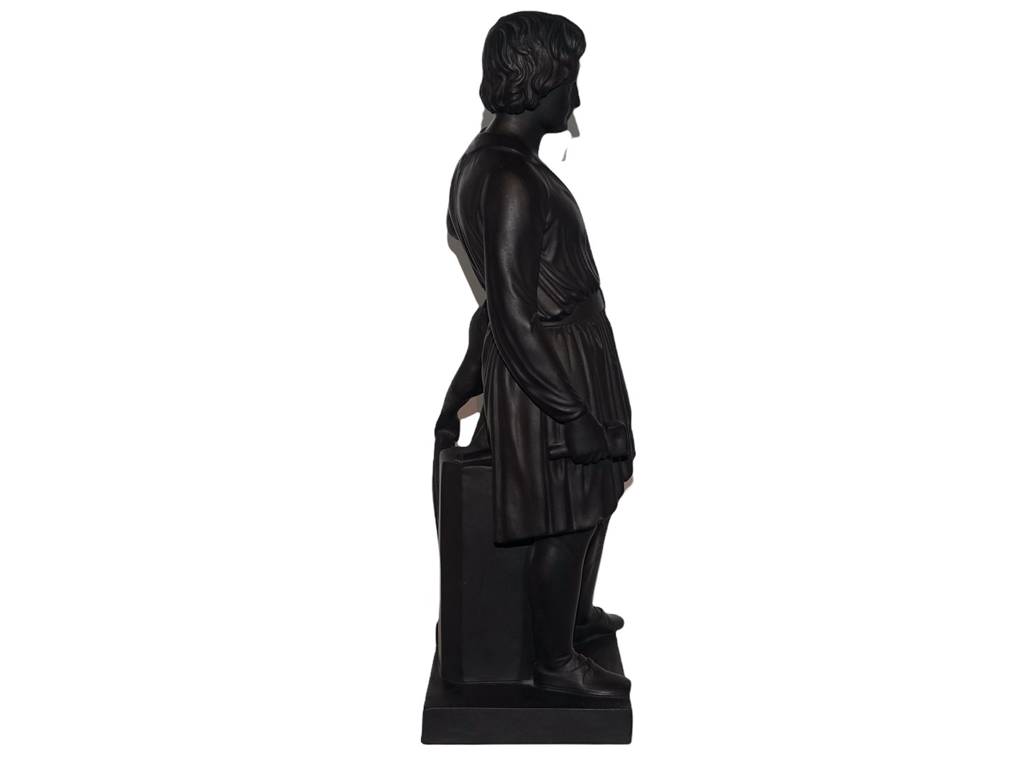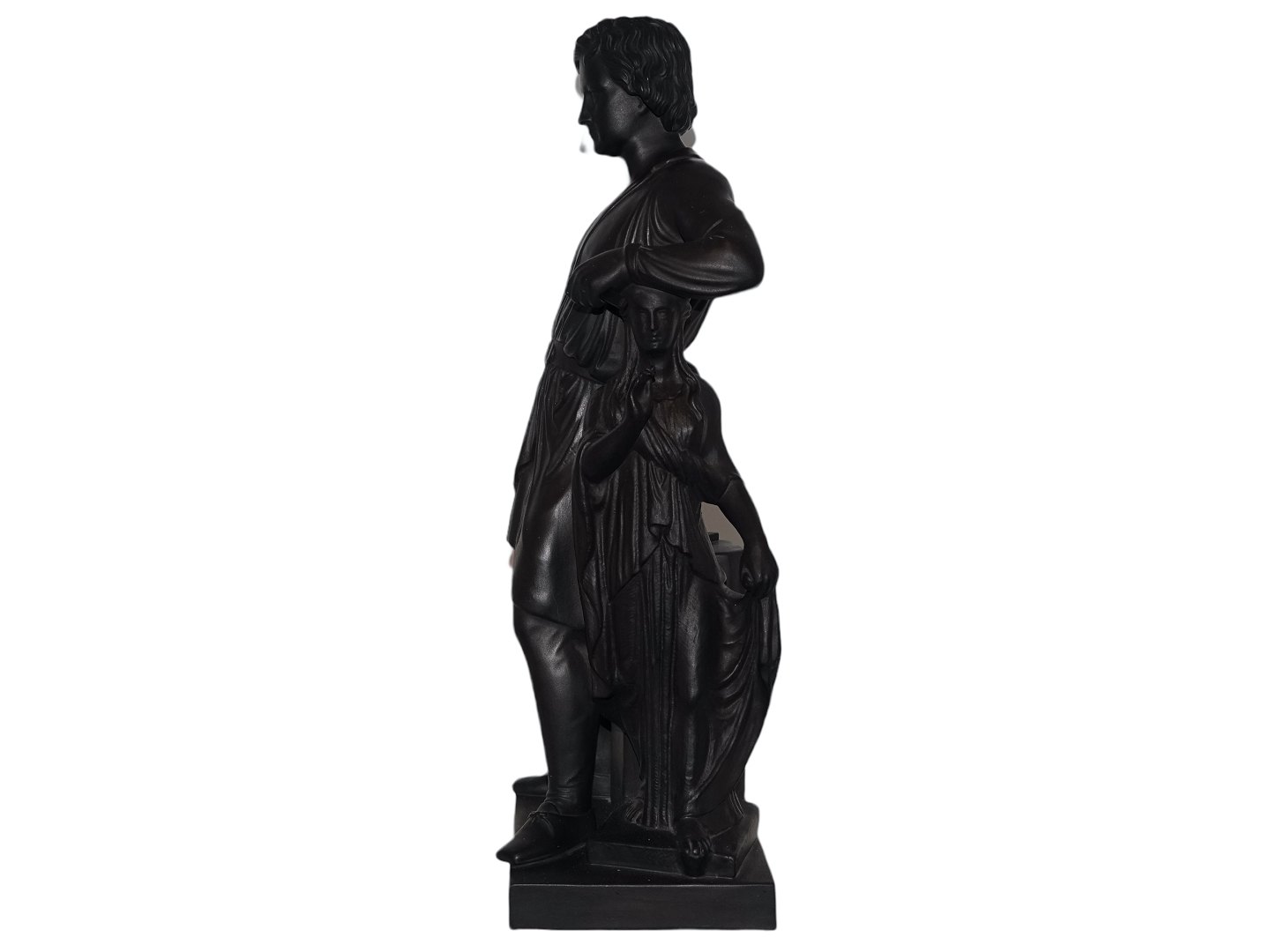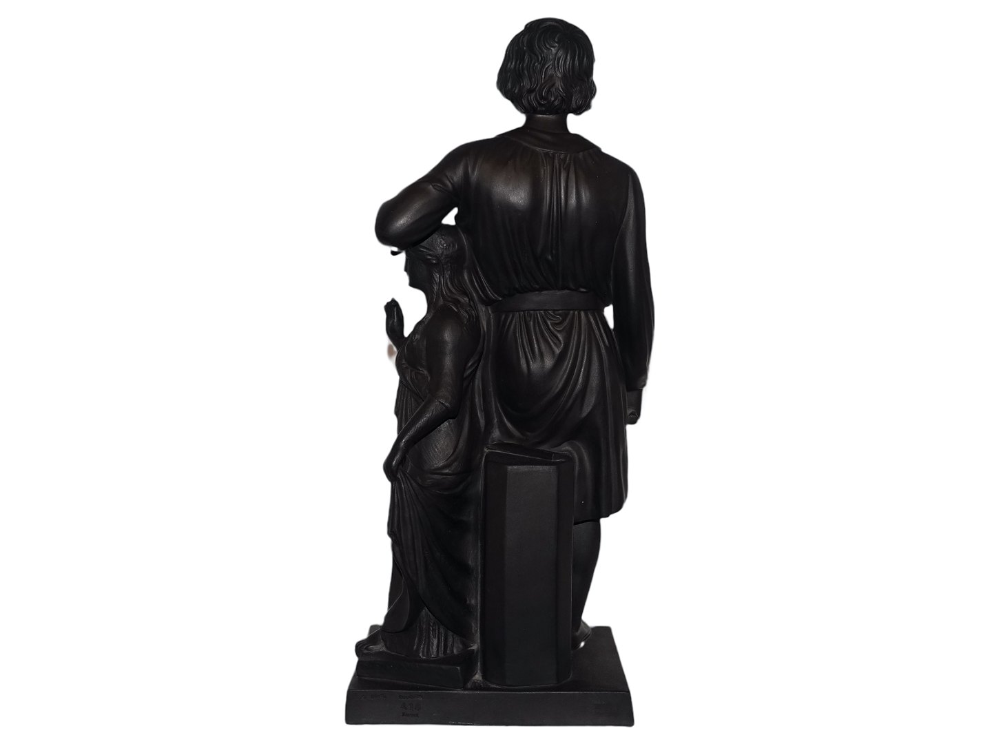 Large black Hjorth terracotta figurine, Thorvaldsen creating a woman sculpture. Decoration number 416. From around 1880 to 1900. Height 45.0 cm. Perfect condition with no chips, cracks or repairs.