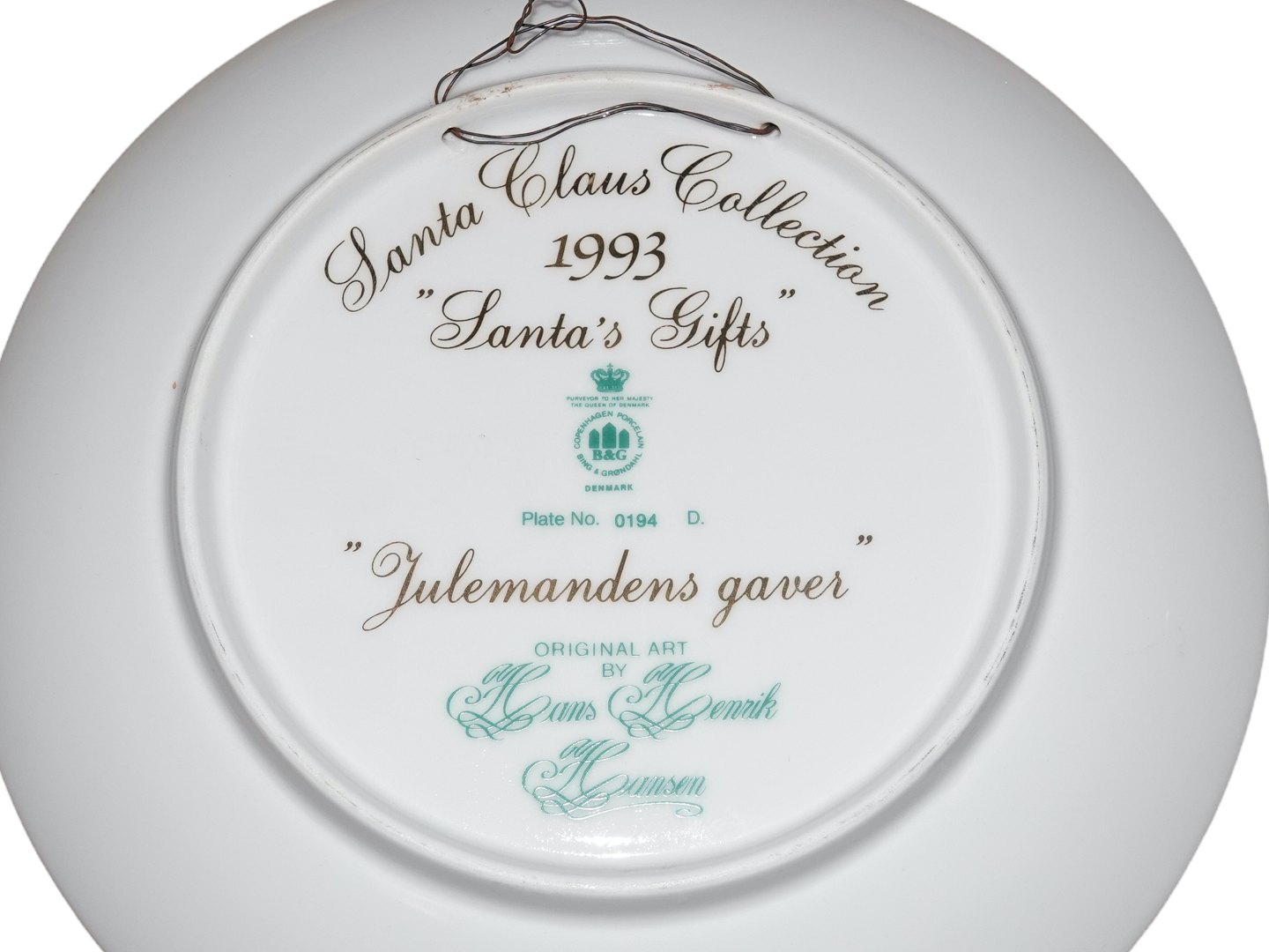 Bing & Grøndahl Santa Claus Collection platte, Julemandens Gaver fra 1993.