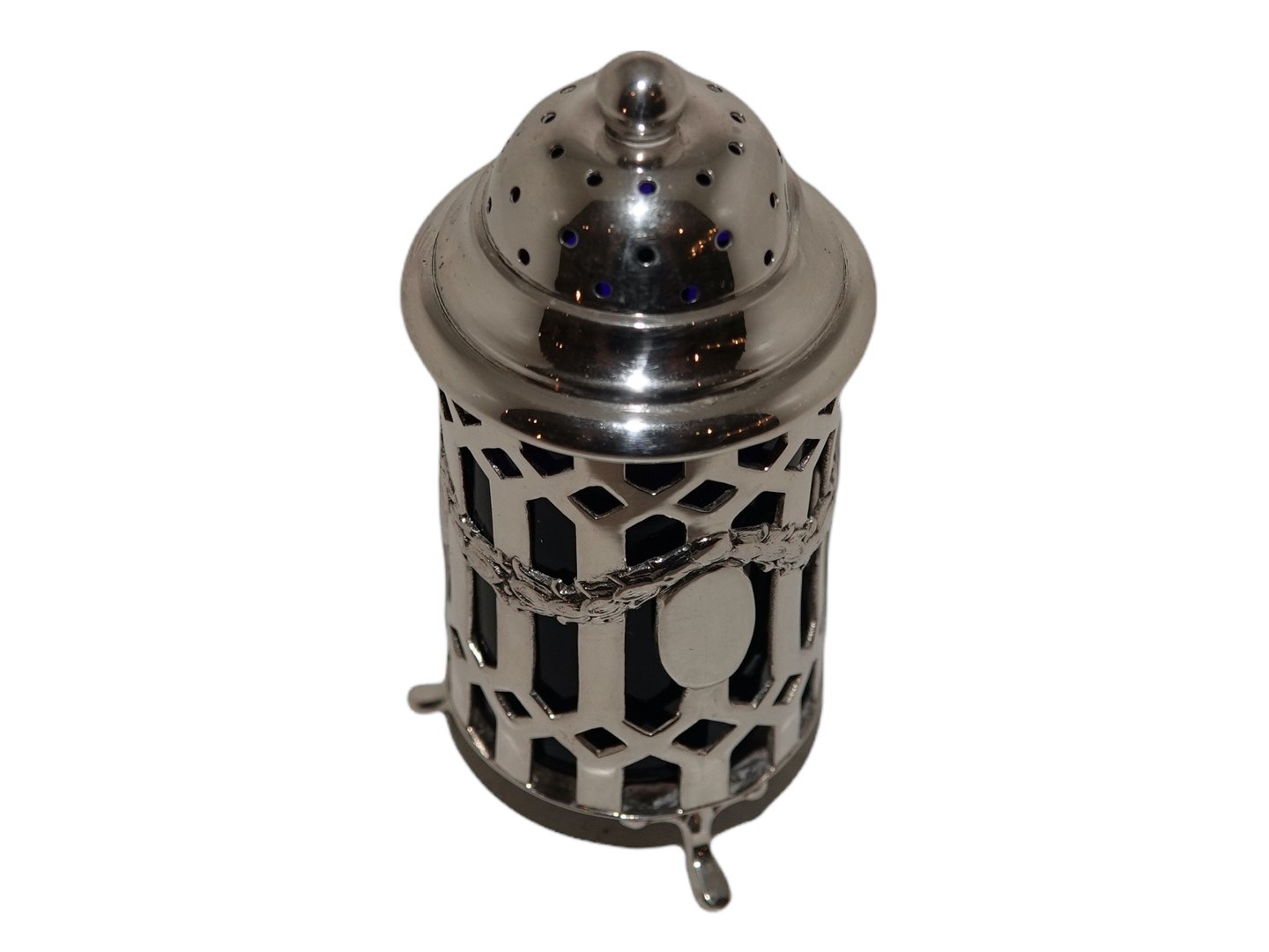 Peberbøsse med blåt glas fra 1902