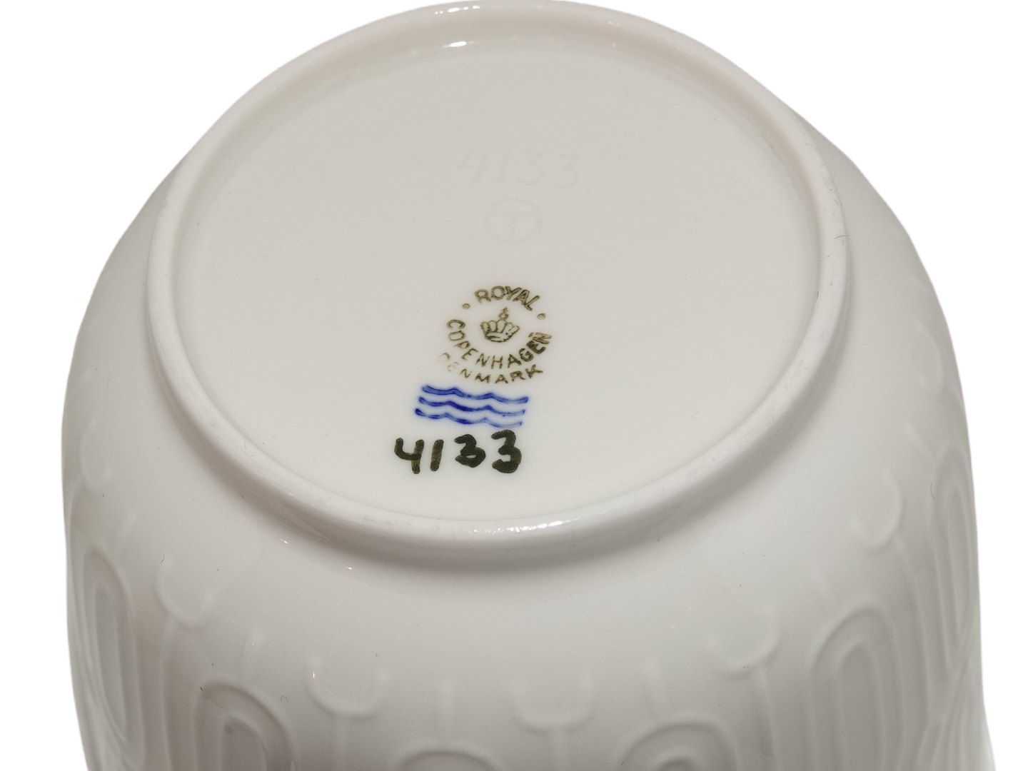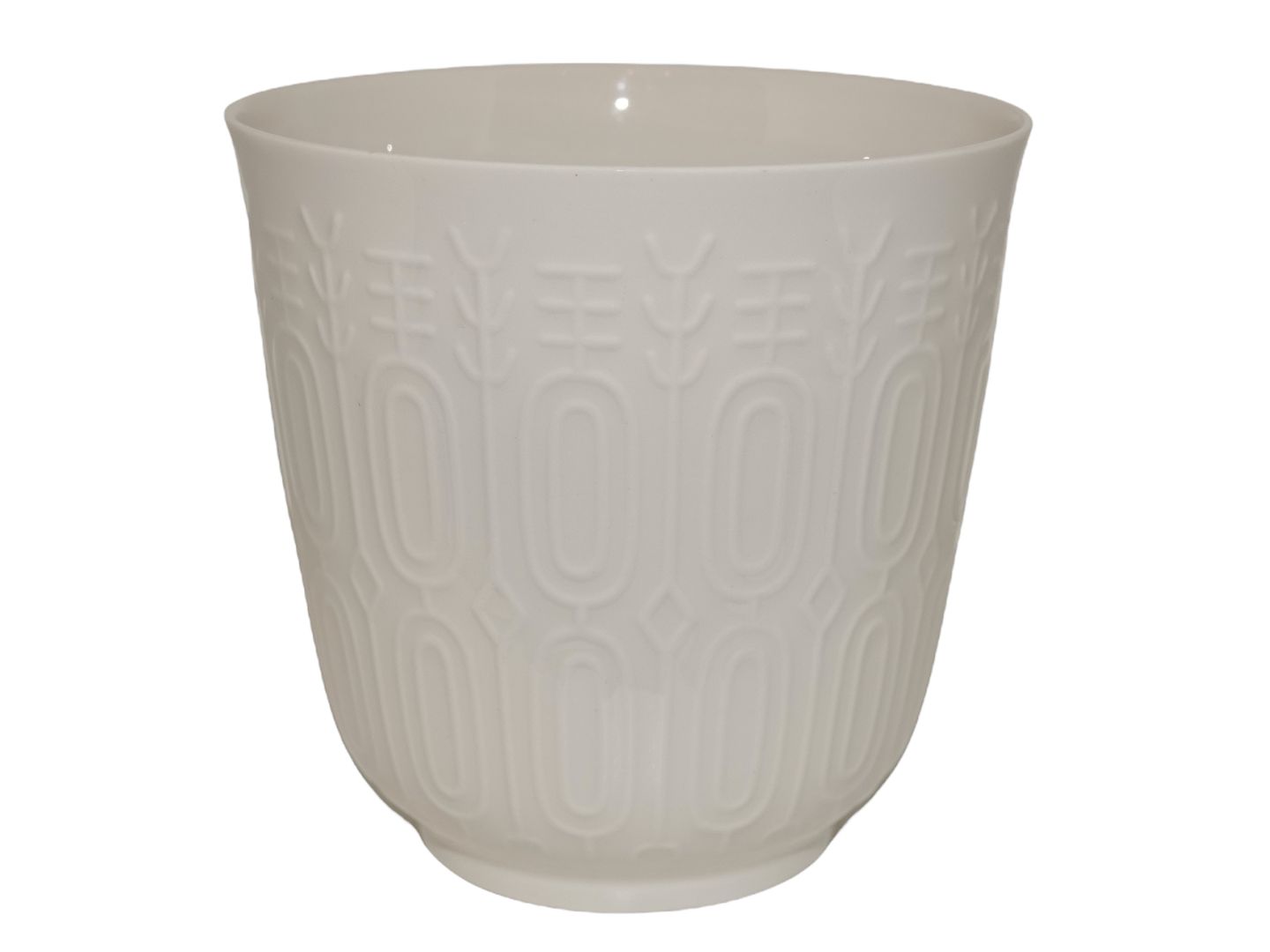 Royal Copenhagen blanc de chine porcelain, flower pot. Decoration number 4133. Designed by Thorkild Olsen. Factory first. Diameter 14.5 cm., height 14.3 cm. Perfect condition with no chips, cracks or repairs.