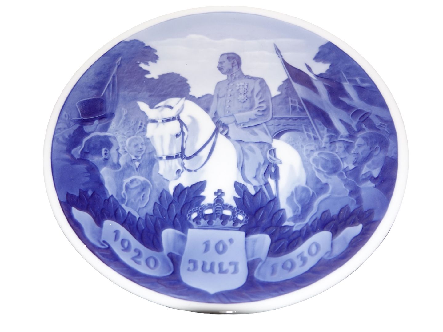 Royal Copenhagen Mindeplatte fra 1930, 10 års dagen for Genforeningen, 10. Juli 1920-1930. Kong Christian X rider over grænsen.