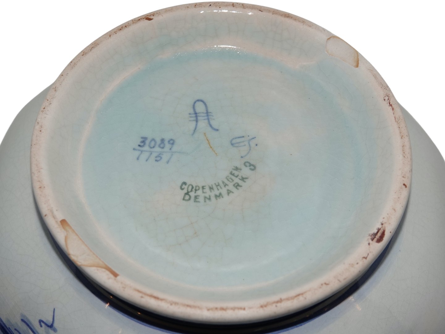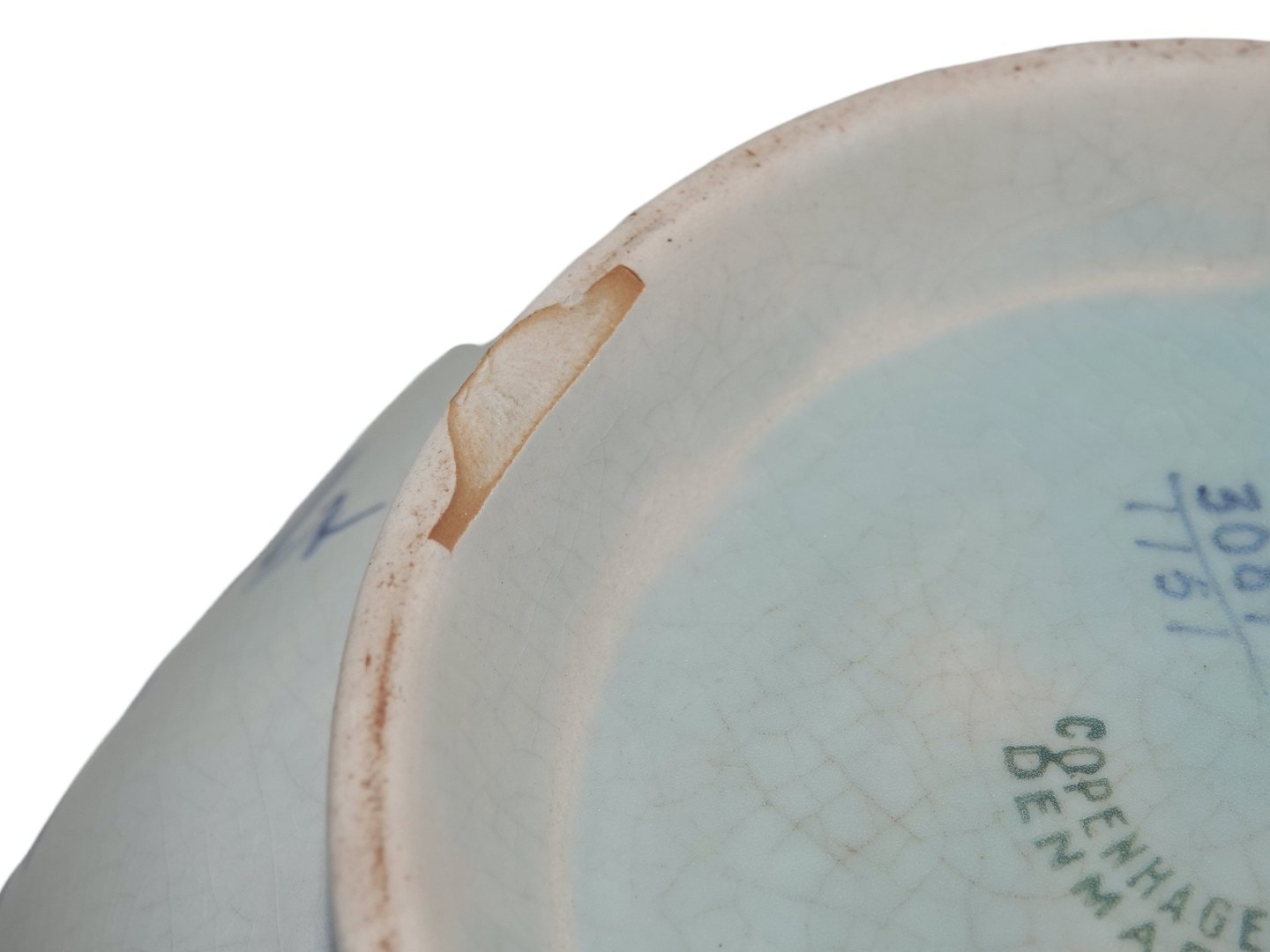 There are two chips at bottom edge and discolourations on the inside of the bowl. There are also crazings in the glaze. Otherwise excellent condition.