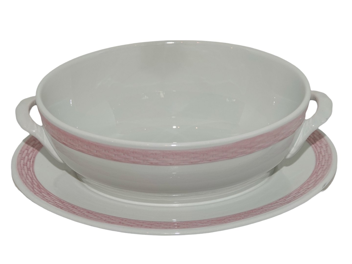 Royal Copenhagen lidded gravy boat (small tureen), with pink decoration.