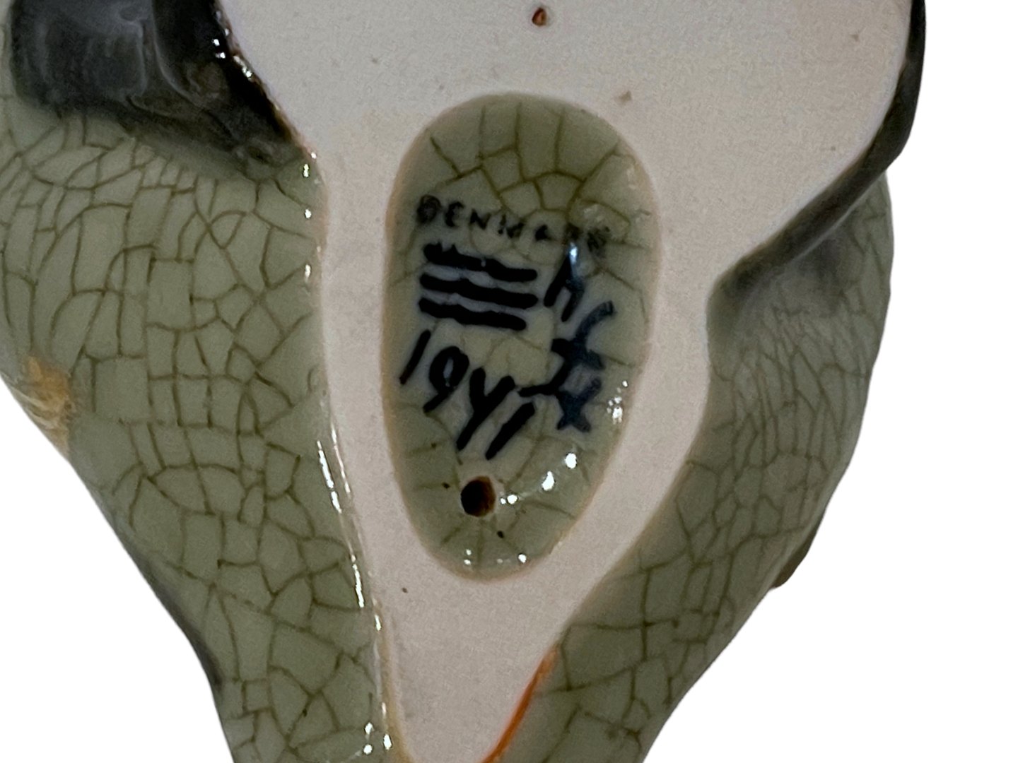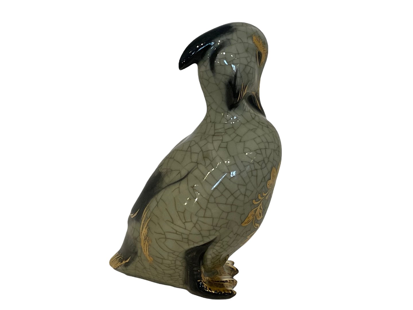 Royal Copenhagen large green Craquele with Gold, duck figurine.