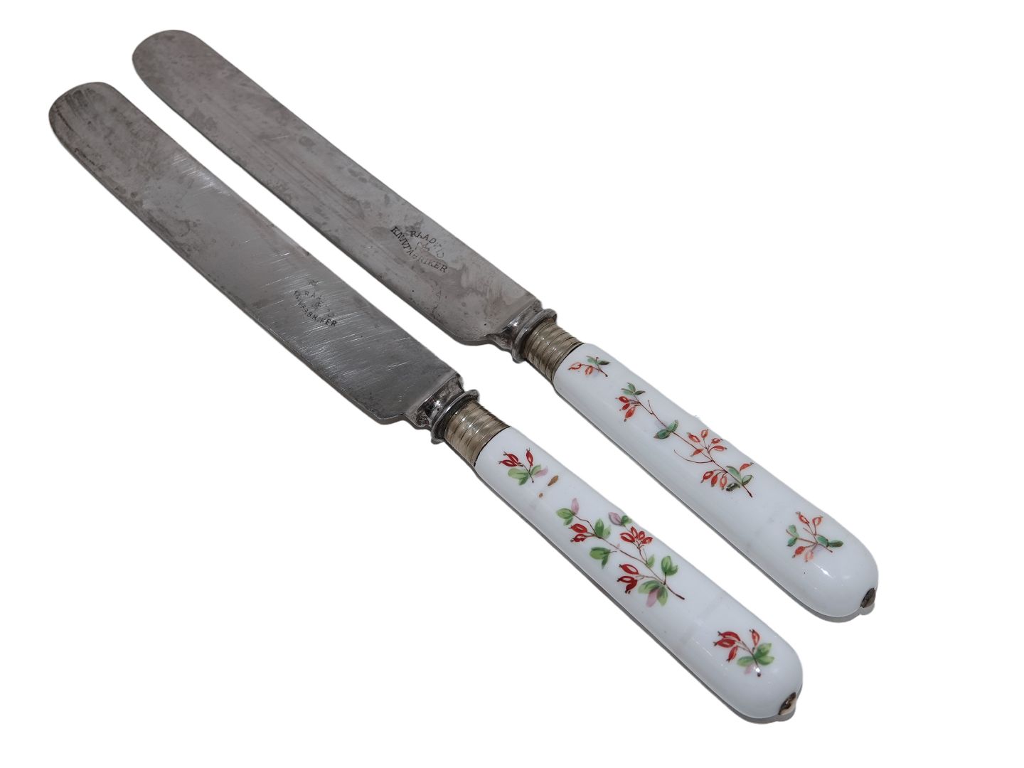 Royal Copenhagen Berberis, lang middagskniv med originalt Raadvad knivblad. Længde 26,5 cm., hvoraf bladet måler 15,7 cm. Der er lidt mærker på knivbladet ellers perfekt stand.