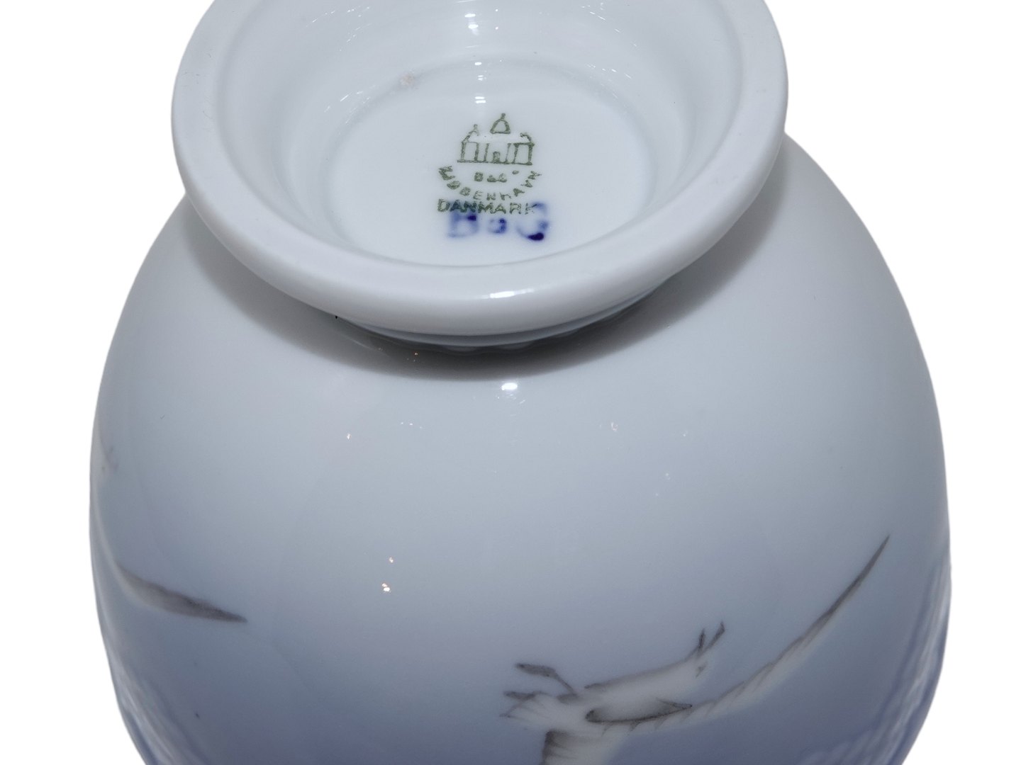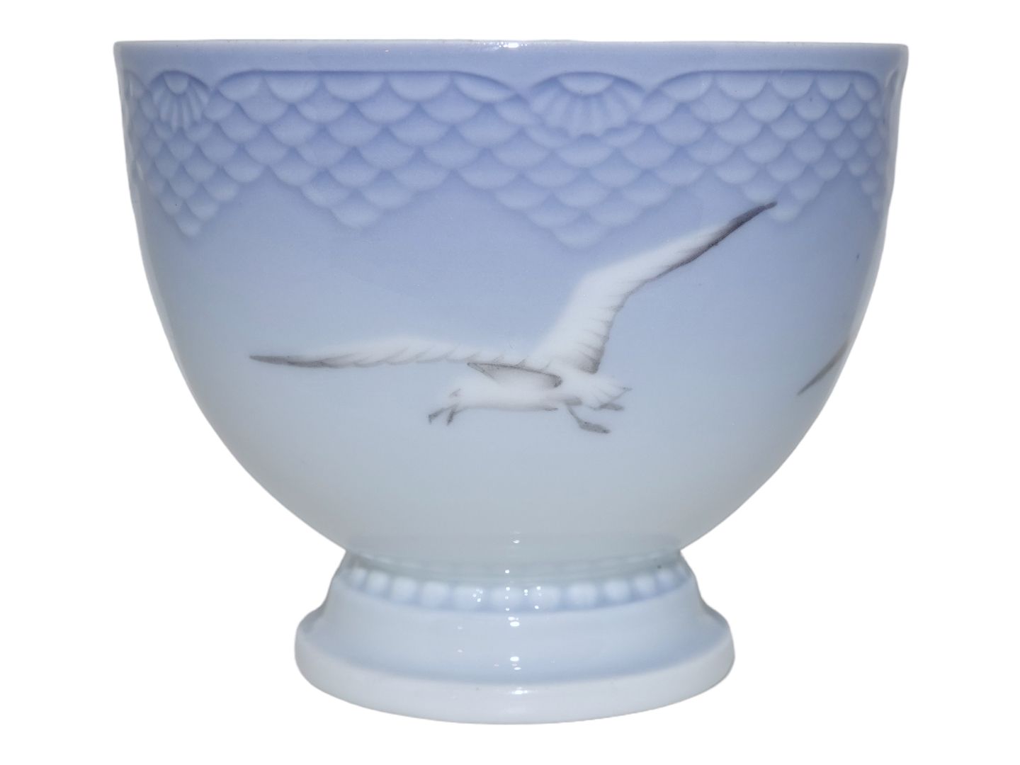 Bing & Grøndahl Måge uden guldkant, sjælden skylleskål. Af fabriksmærket ses det, at denne er produceret mellem år 1915 og 1948. 2. sortering. Diameter 11,5 cm., højde 9,5 cm. Perfekt stand uden fejl.