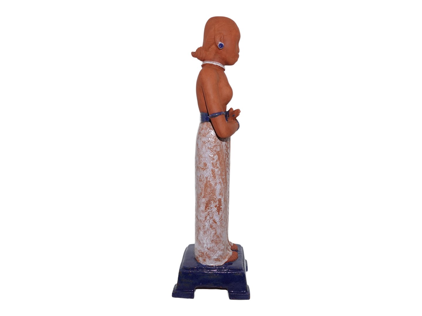 Tall Art pottery figurine - African lady. Unknown signature and most likely made in the 1970'es. Possibly from Sweden. Height 36.0 cm. Perfect condition.