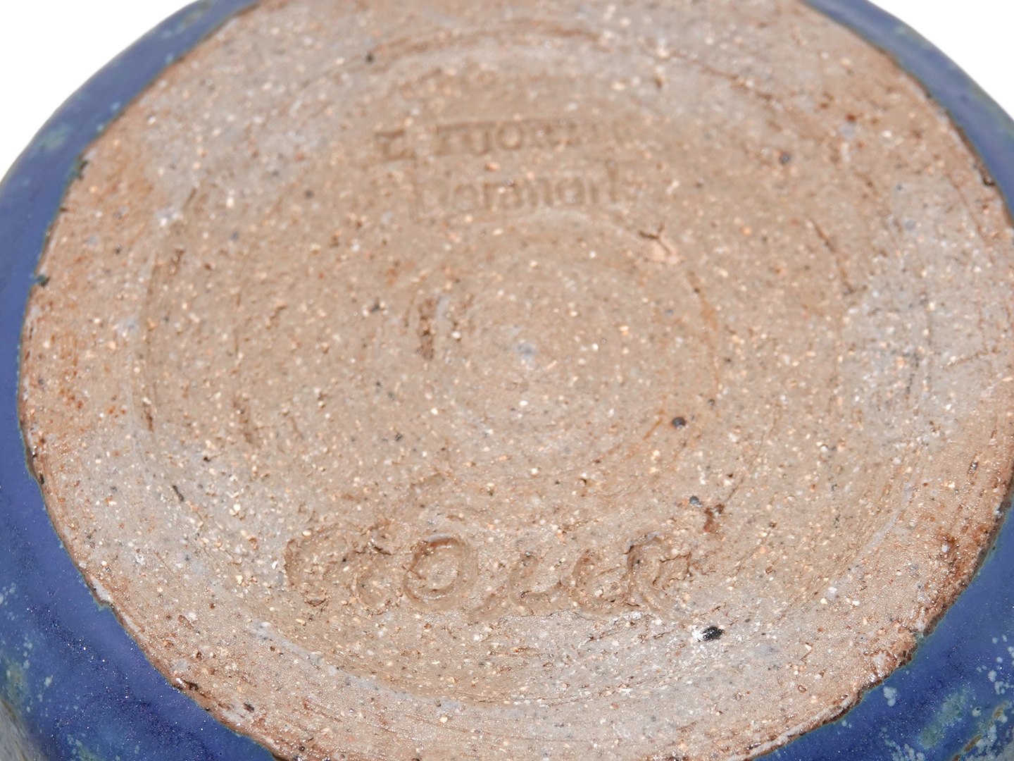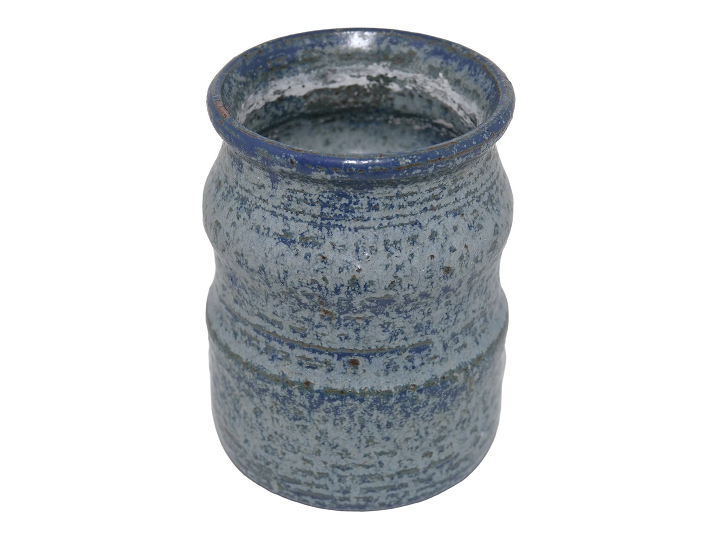 Hjorth art pottery from the island Bornholm, blue vase signed "Lone".