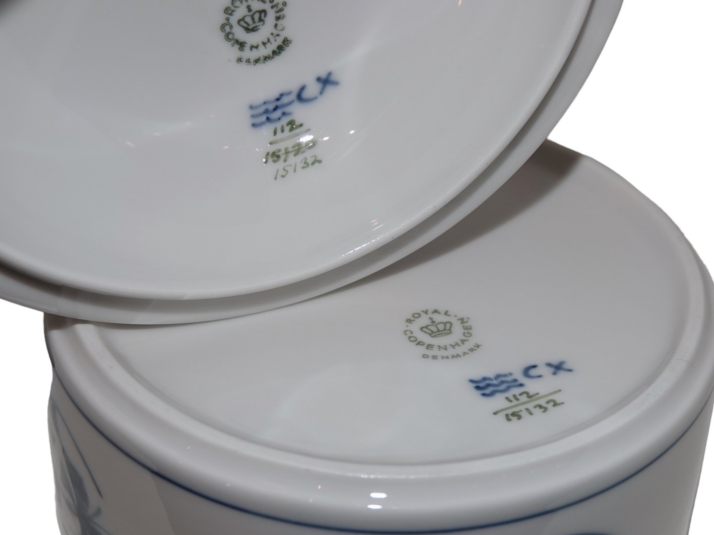 Royal Copenhagen Noblesse, rund skål med låg. Designet af Niels Refsgaard og Erik Reiff i 1982. Dekorationsnummer 112/15132. 3. sortering. Diameter 13,3 cm. Perfekt stand uden fejl.