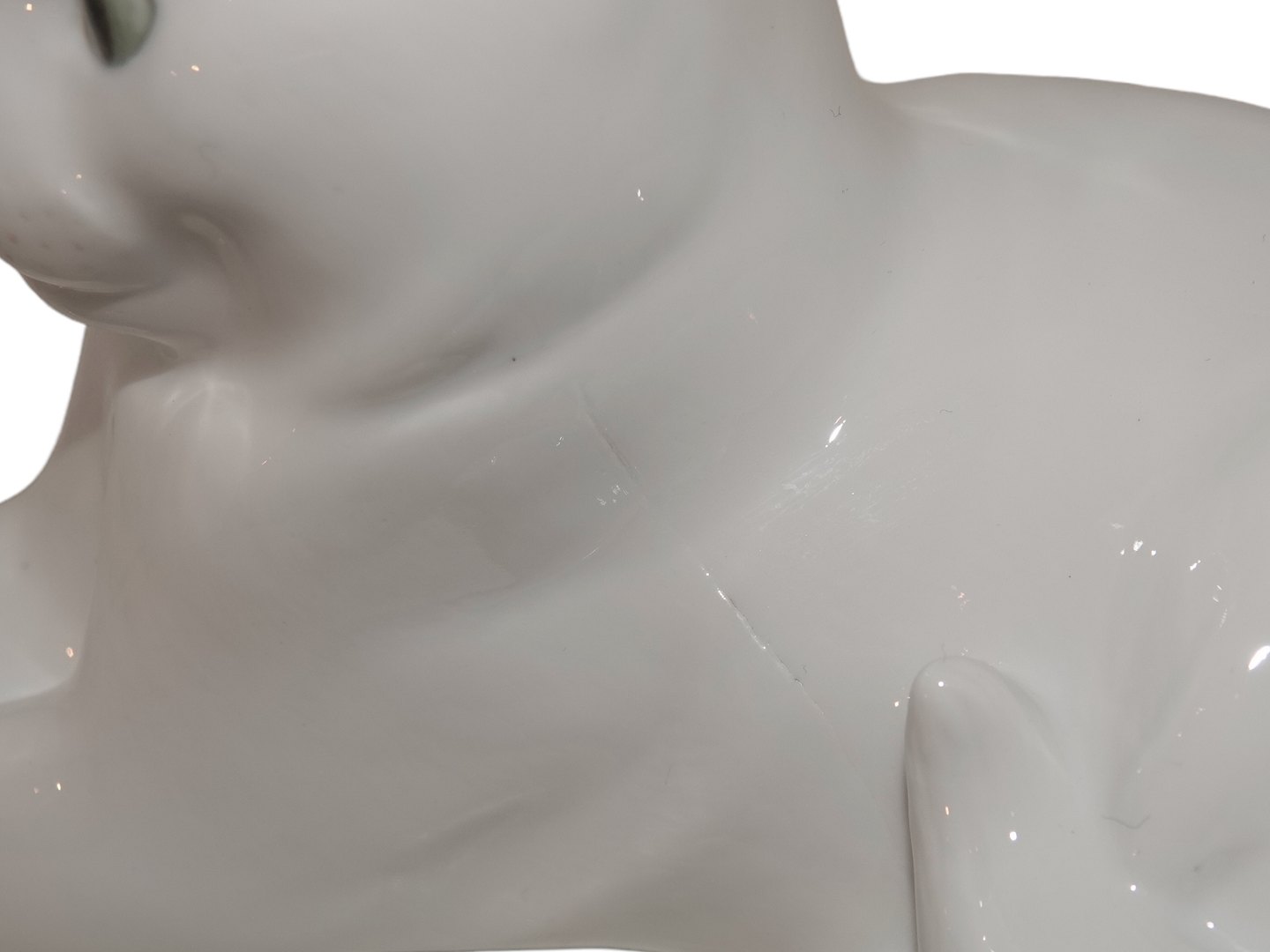 Sjælden Royal Copenhagen figur, liggende hvid kat.