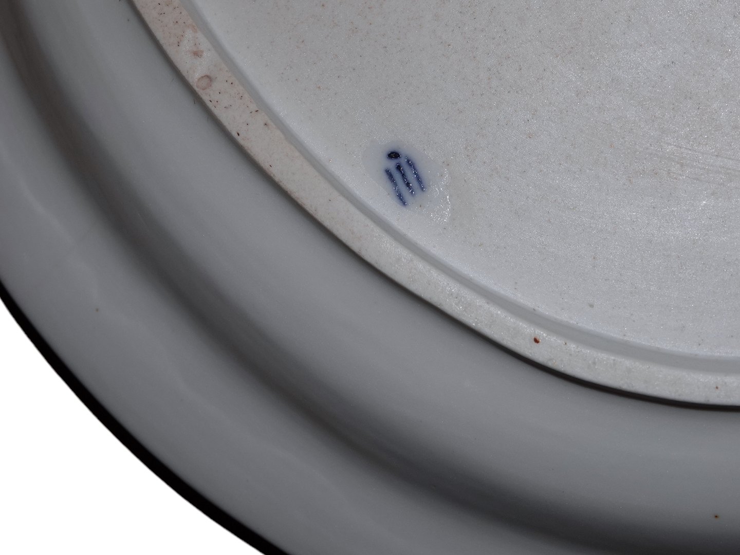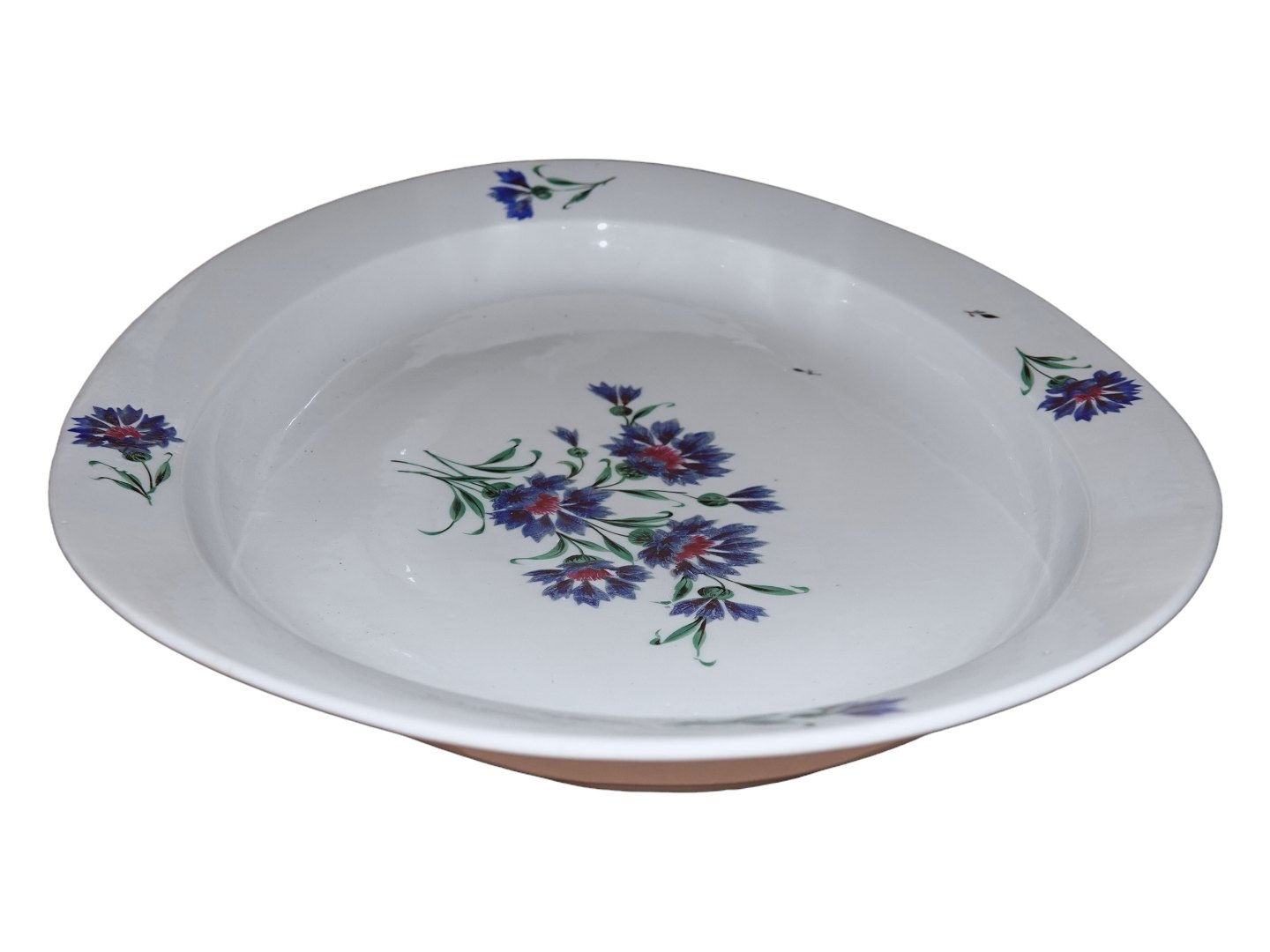 This platter is some uneven in shape, but it was born that way. Otherwise perfect condition with no chips, cracks or repairs.