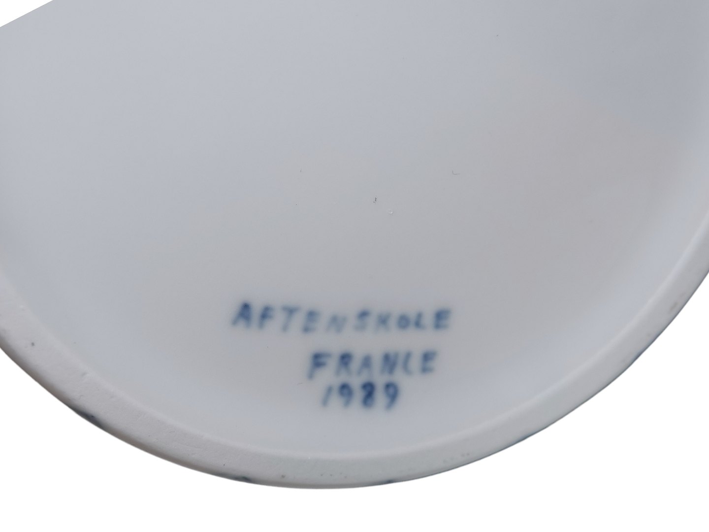Royal Copenhagen havde en aftenskole, hvor de ansatte kunne øve sig eller lave ting til sig selv. Man brugte Royal Copenhagen porcelæn og maling. Tingene skulle efterfølgende godkendes, og opfyldte de ikke visse kvalitetskrav, så blev de destrueret. Disse ting er mærket med blå skrift: “Aftenskole”. Nogle af delene er mærket med de Blå Bølger og andre ikke.