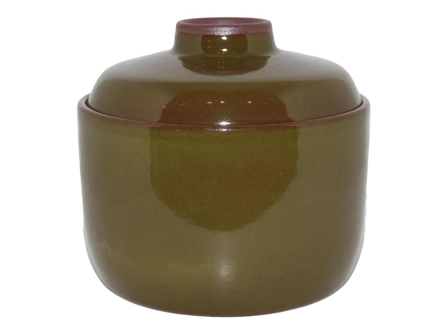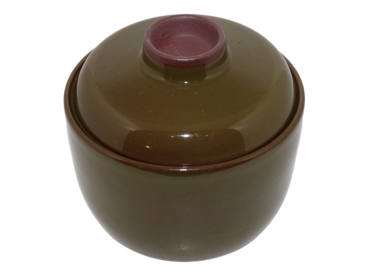 Aluminia Timiana, skål med låg. Formgivet i 1958 af arkitekt Magnus Stephensen. Diameter 11,0 cm., højde 7,0 cm. 1. sortering. Perfekt stand.