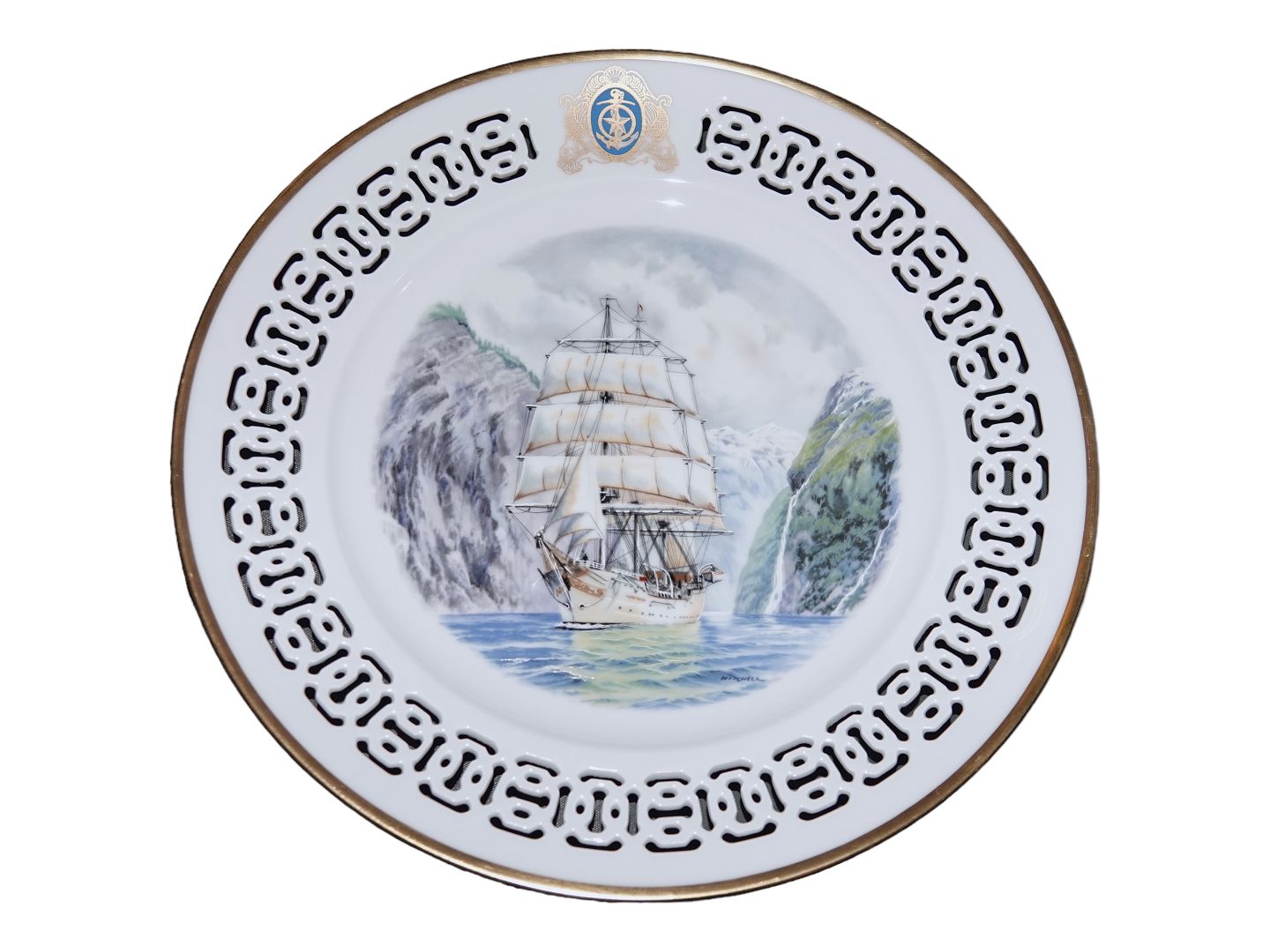 Bing & Grøndahl stor Windjammer platte med sejlbåde, Christian Radich.