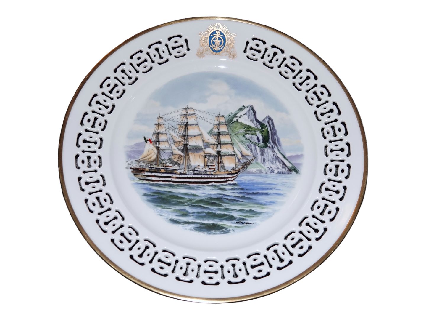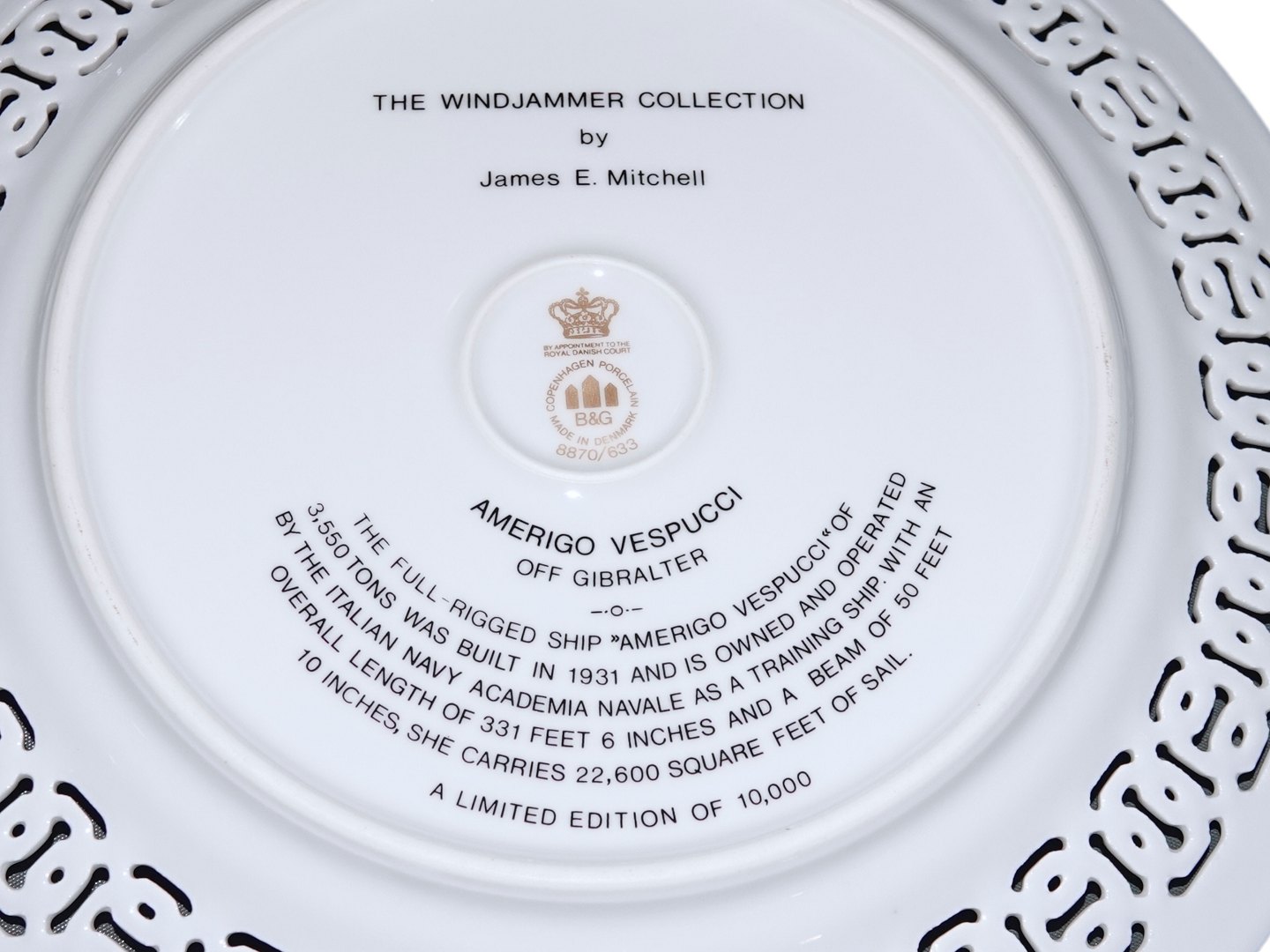 Bing & Grøndahl stor Windjammer platte med sejlbåde, Amerigo Vespucci.