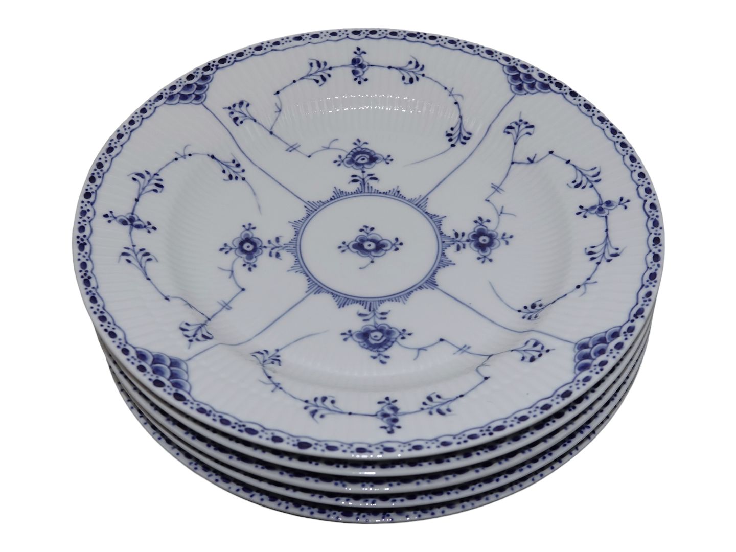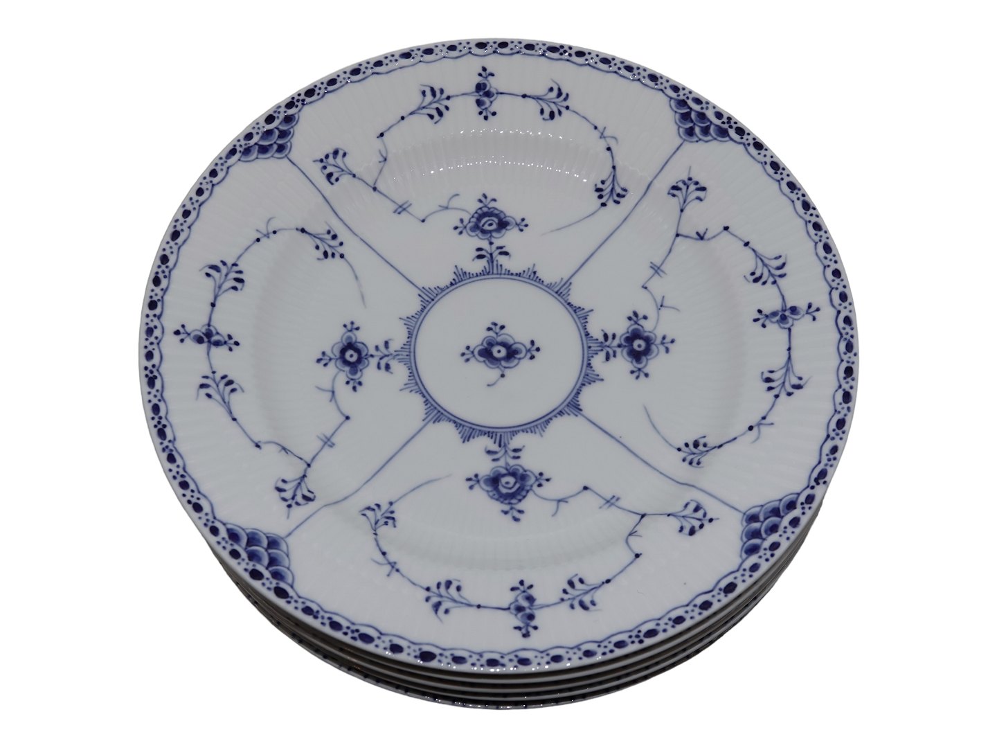 Royal Copenhagen Musselmalet Halvblonde, stor middagstallerken Dekorationsnummer 1/571. 2. sortering. Diameter 25,5 cm. Perfekt stand uden fejl.