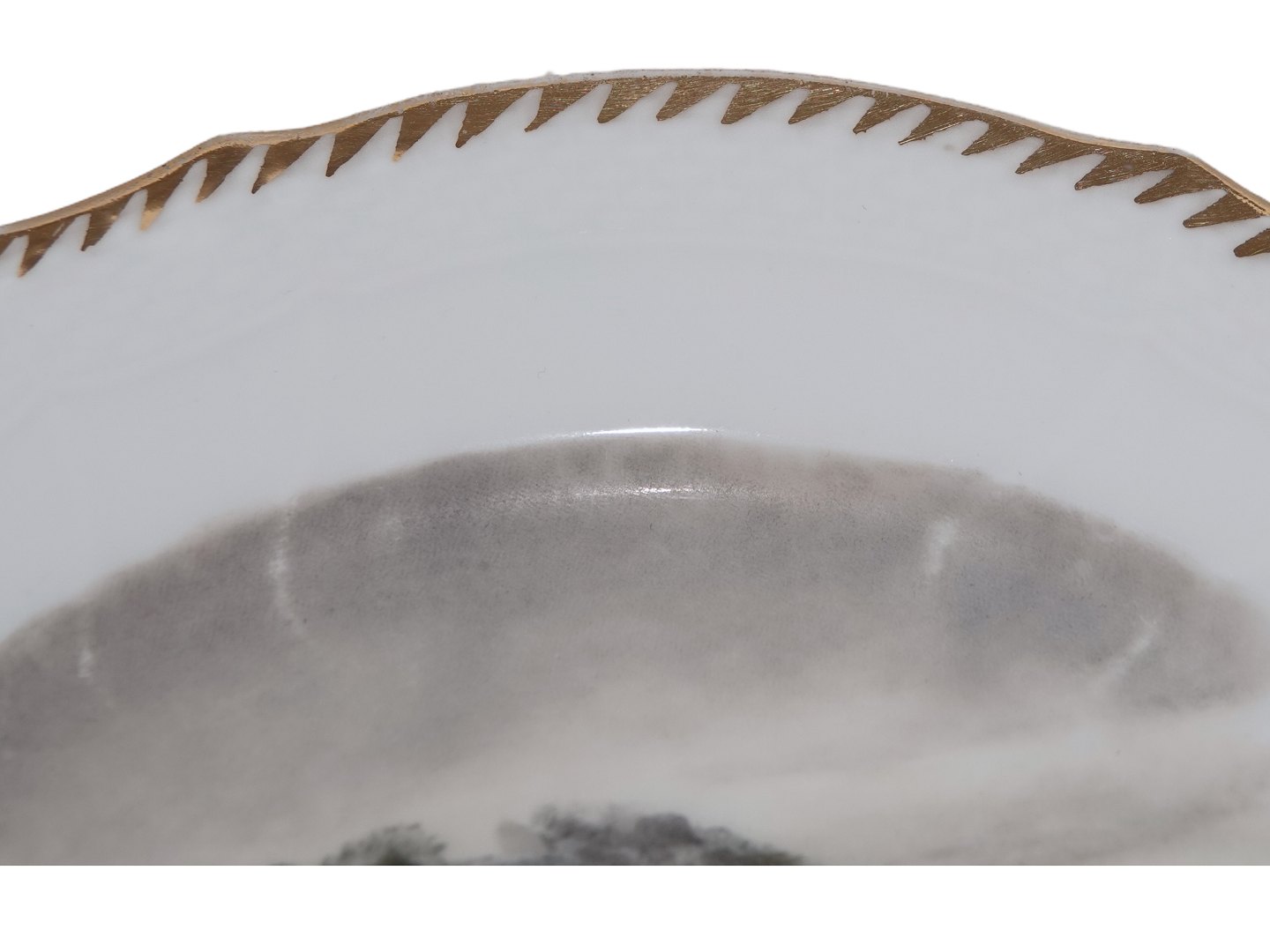 There is a very little wear on the gold edges otherwise perfect condition with no chips, cracks or repairs.