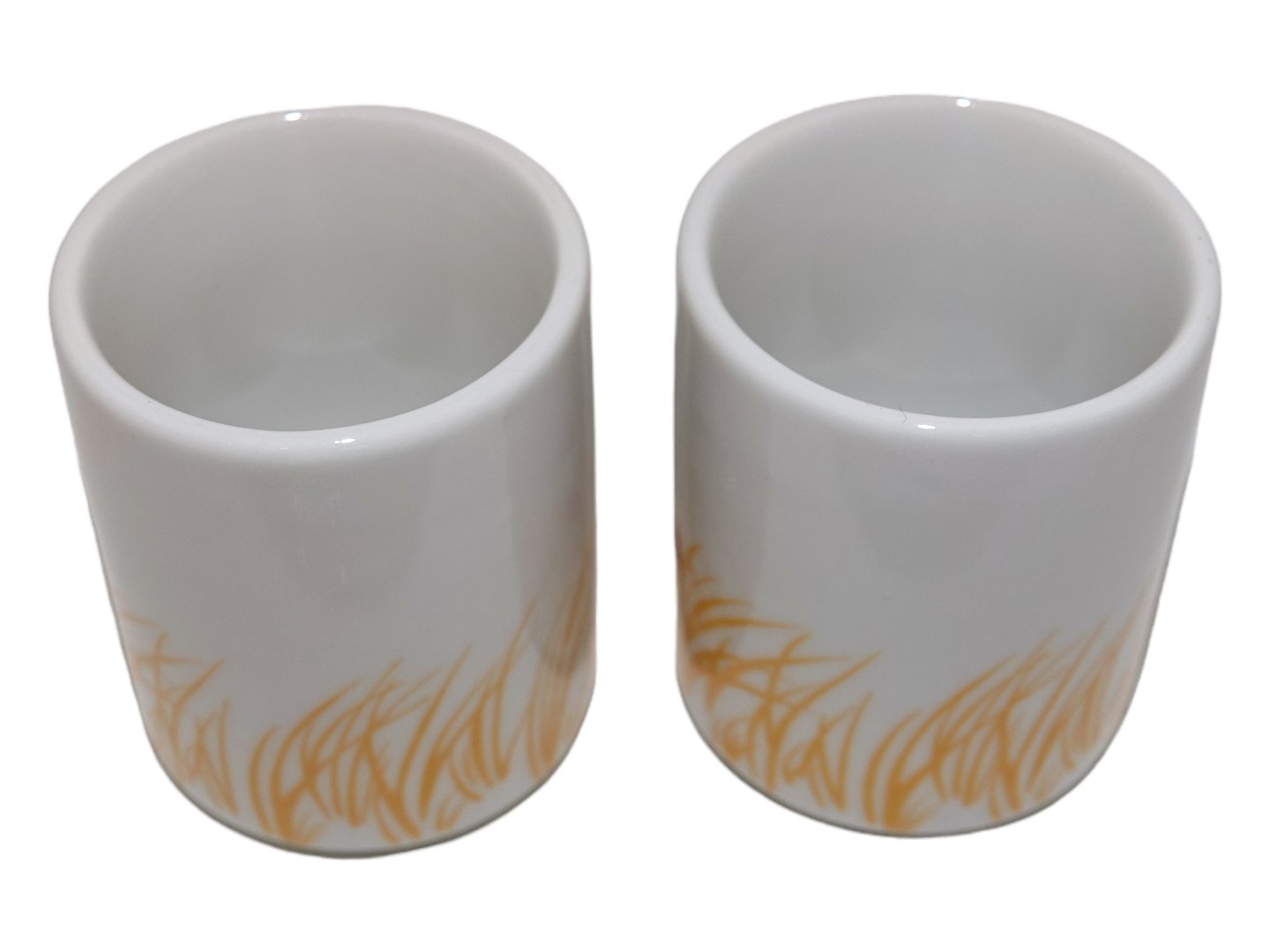 Royal Copenhagen Picknick small beaker with red and yellow flowers.