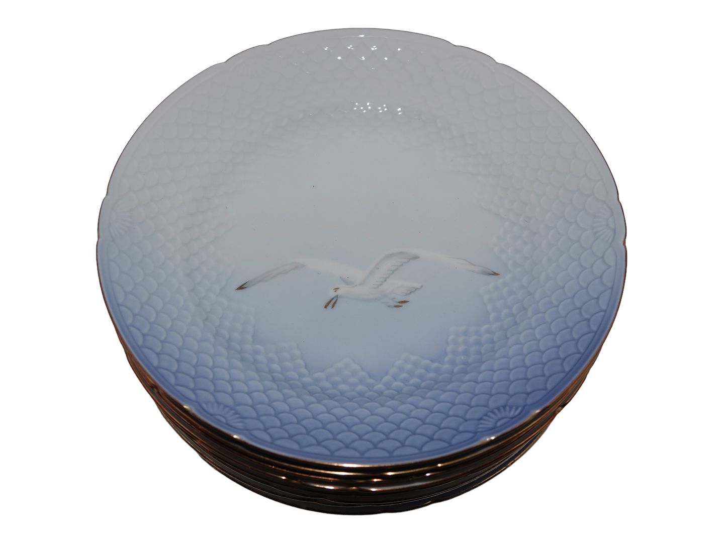 Bing & Grondahl Seagull with gold edge, salad plate. Decoration number 27. Factory second. Diameter 19.0 cm. Perfect condition with no chips, cracks or repairs.