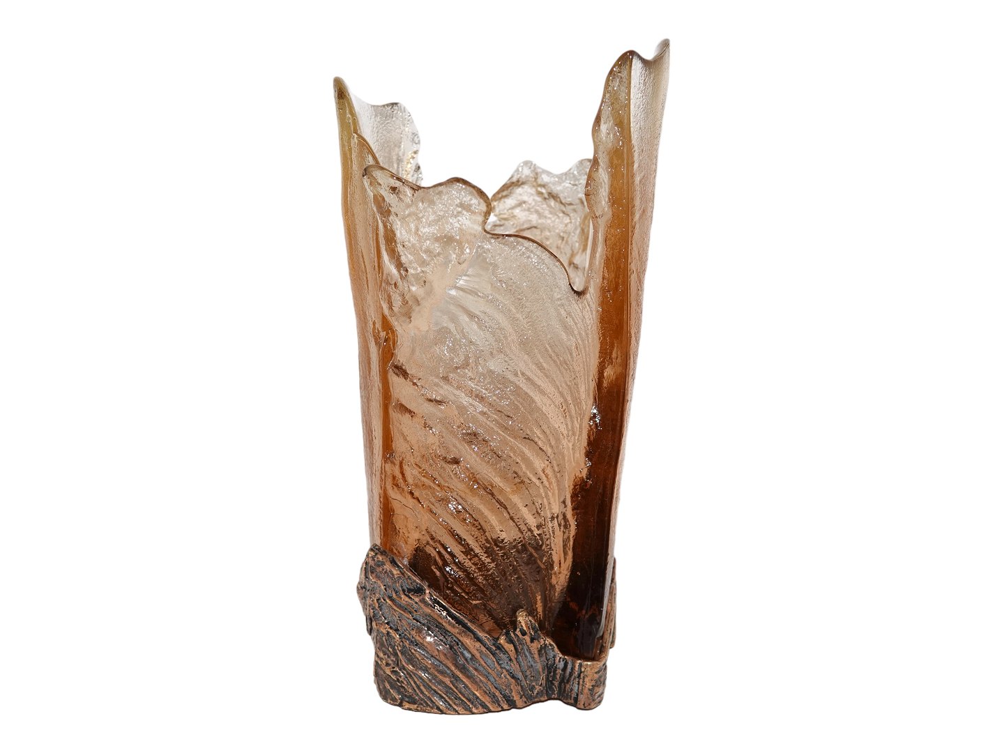 Oy Kumula Finland, vase with brass mounting by Pentti Sarpaneva. Fully signed "Oy Kumula" and "Pentti Sarpaneva". Height 21.1 cm. The brass mounting has two labels also in brass. These are engraved. Perfect condition.