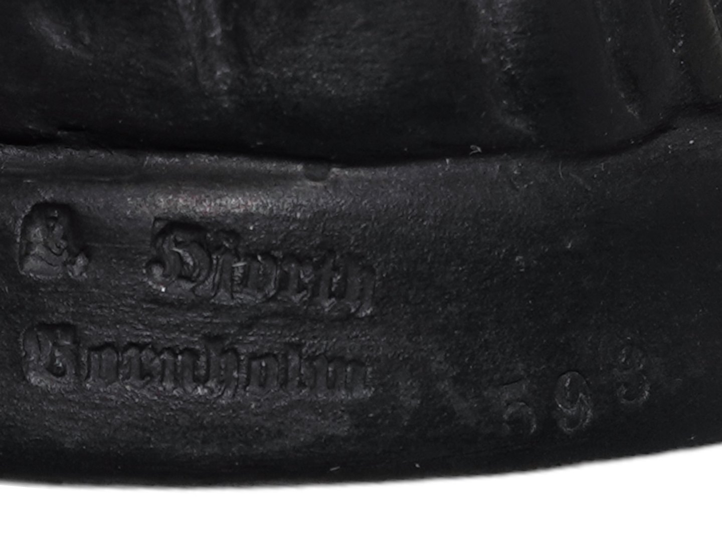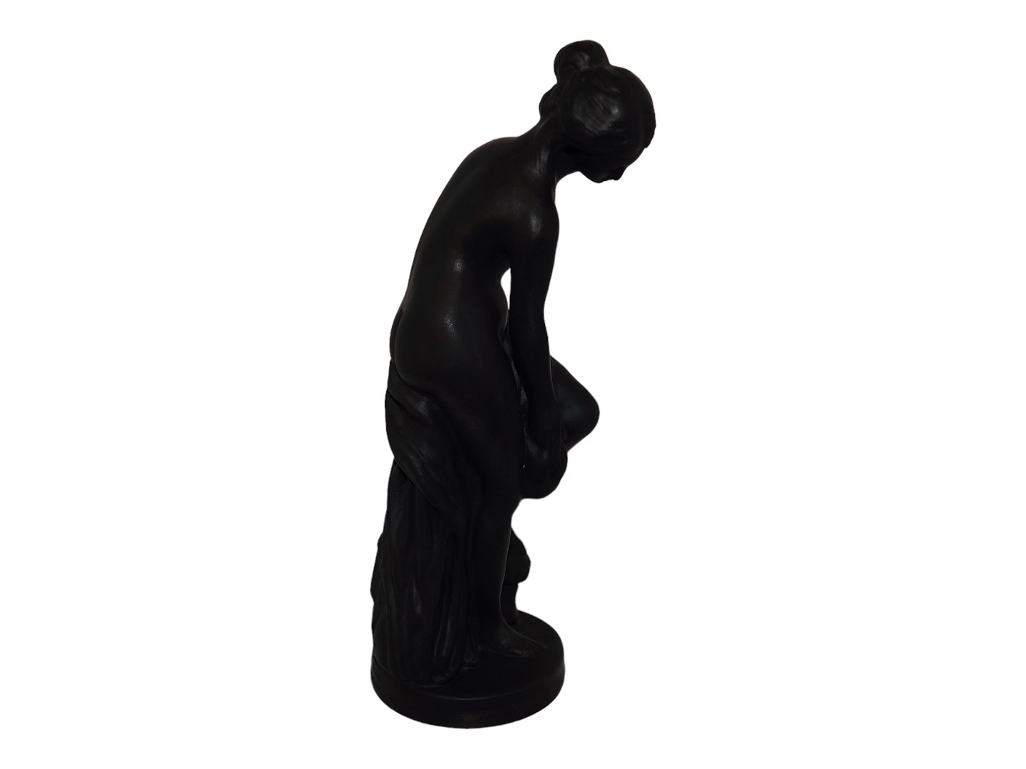 Sort Hjorth terracotta figur, dame. Fra ca. 1880-1900. Dekorationsnummer 593. Højde 22,8 cm. Perfekt stand uden fejl.