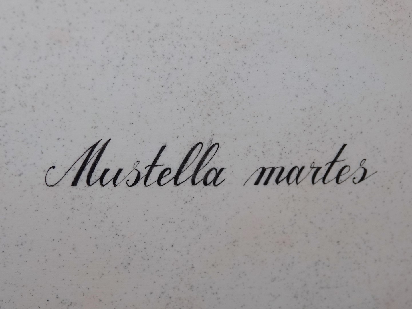 Decorated with "Mustella martes" that is "Pine marten" in English.