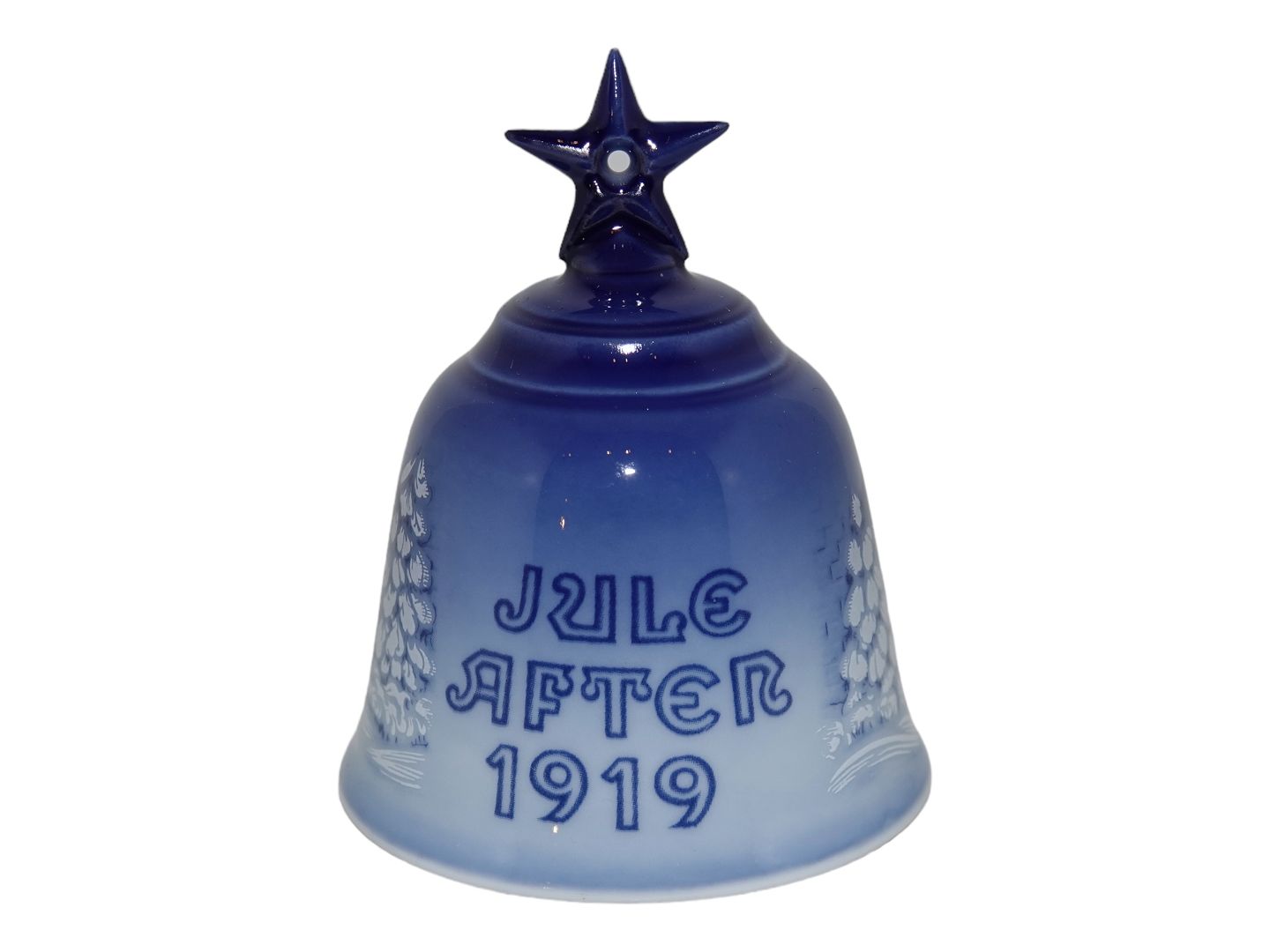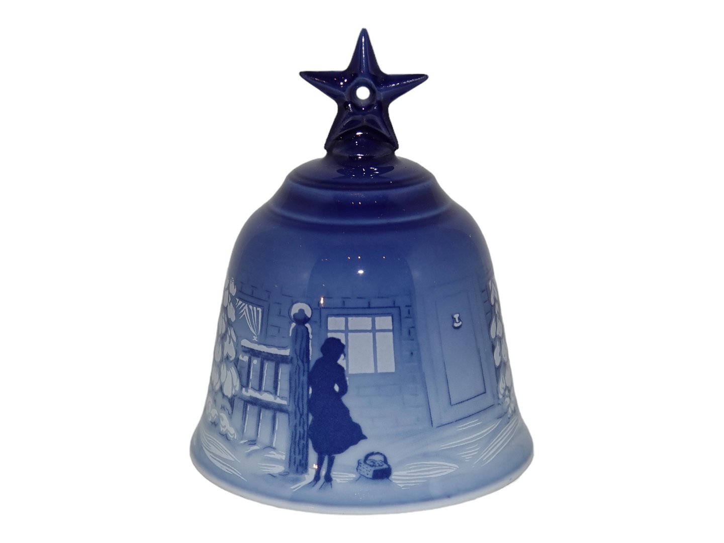Bing & Grøndahl lille Juleklokke / julepynt med 1919 Juleaften / Juleplatte motiv. Decorationsnummer 12919. Den er produceret mellem 1970 og 1983. 1. sortering. Højde 8,0 cm. Perfekt stand.