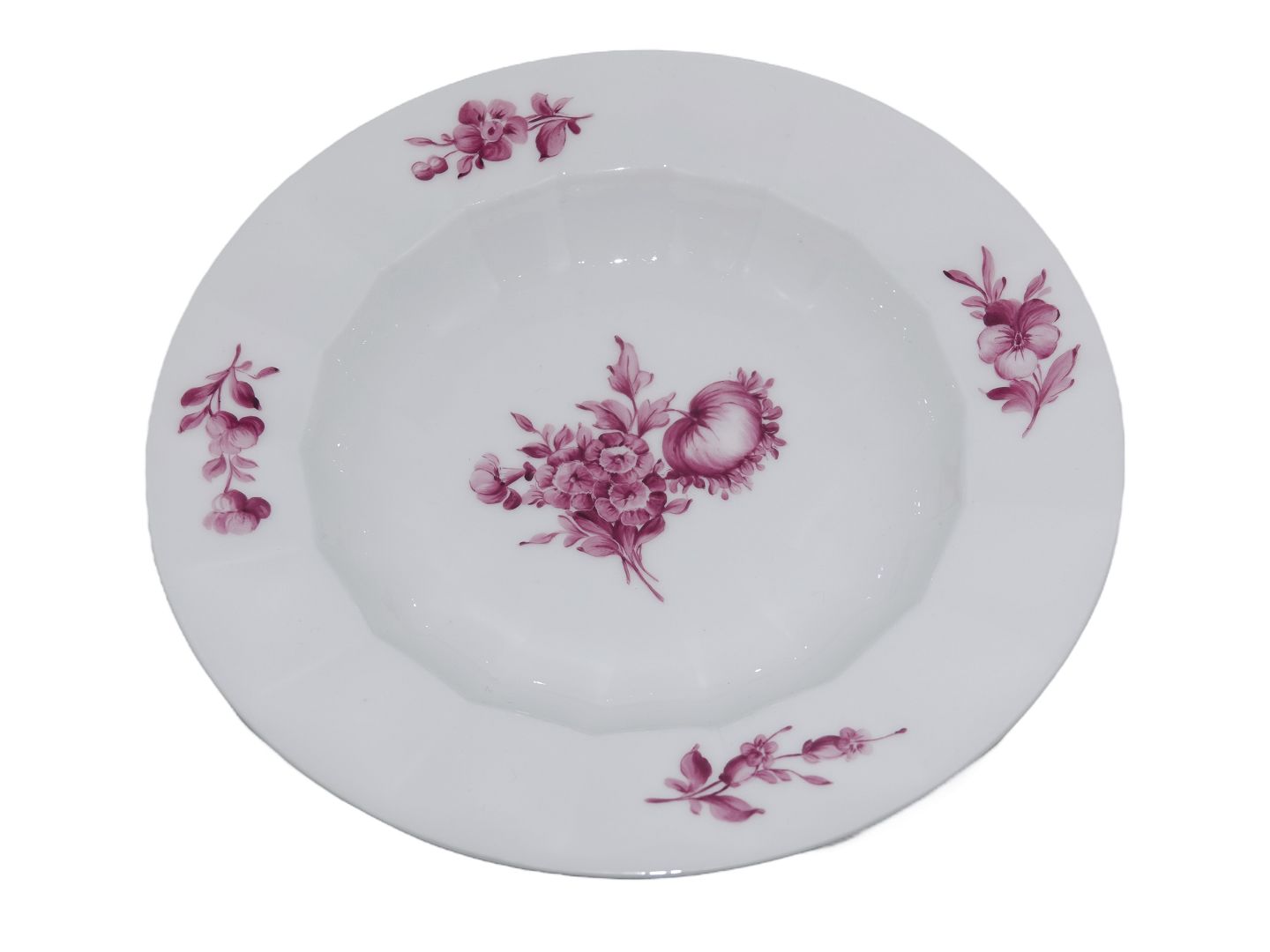 Royal Copenhagen Purpur Angular, large soup plate. Decoration number 427/8546. These were produced between 1894 and 1928. Factory first. Diameter 25.2 cm. Perfect condition with no chips, cracks or repairs.