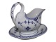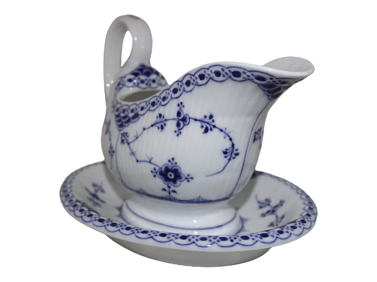 Royal Copenhagen Blue Fluted Half Lace, gravy boat on fixed platter.