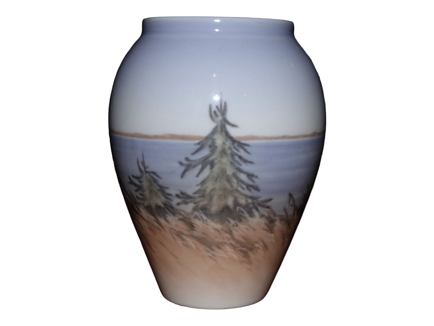 Royal Copenhagen mindre vase med landskab. Af fabriksmærket ses det, at denne er produceret i 1964. Dekorationsnummer 2891/271. 1. sortering. Højde 11,8 cm. Perfekt stand uden fejl.