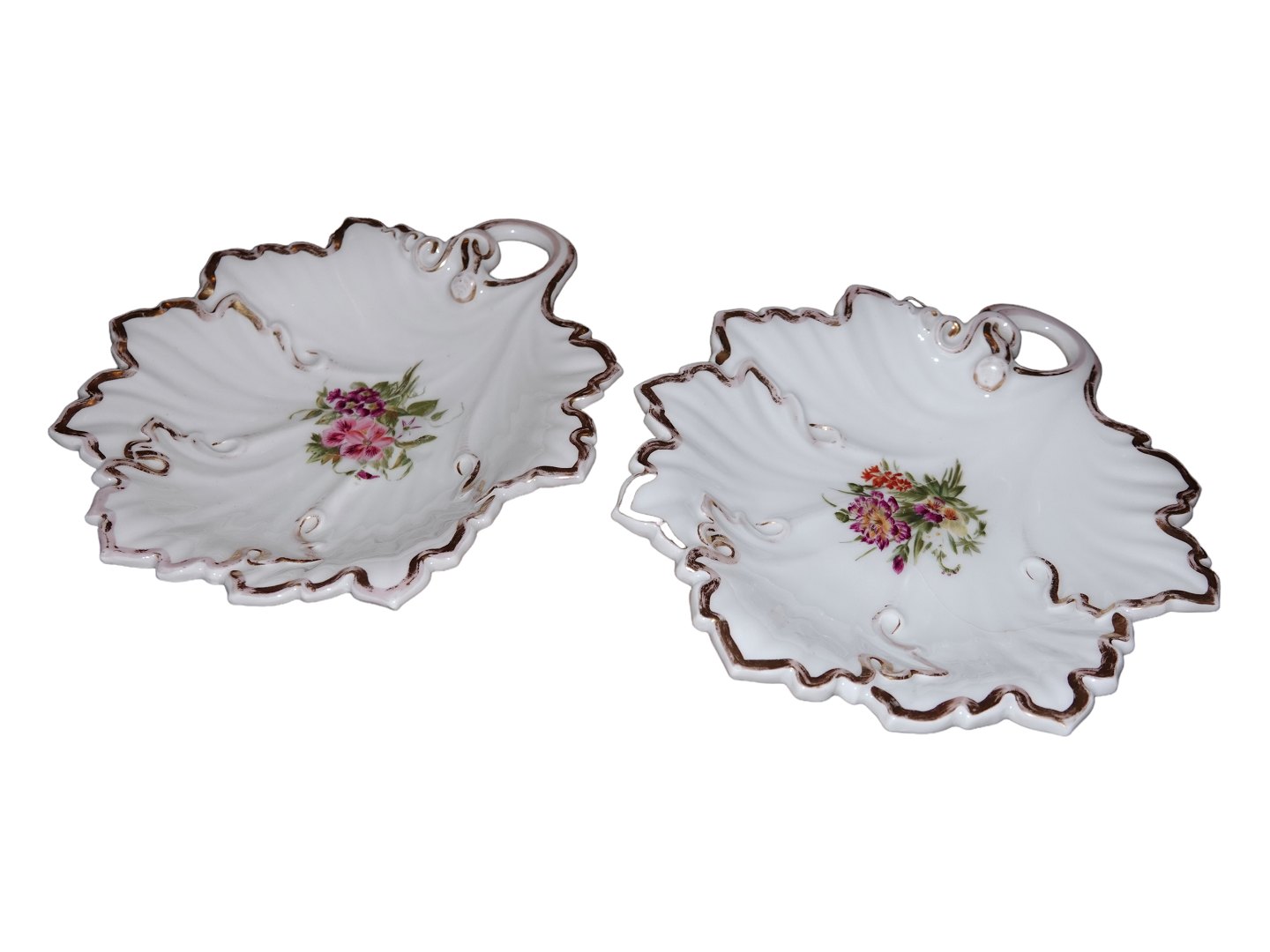 Par kageskåle med flerfarvede blomster fra 1853-1895