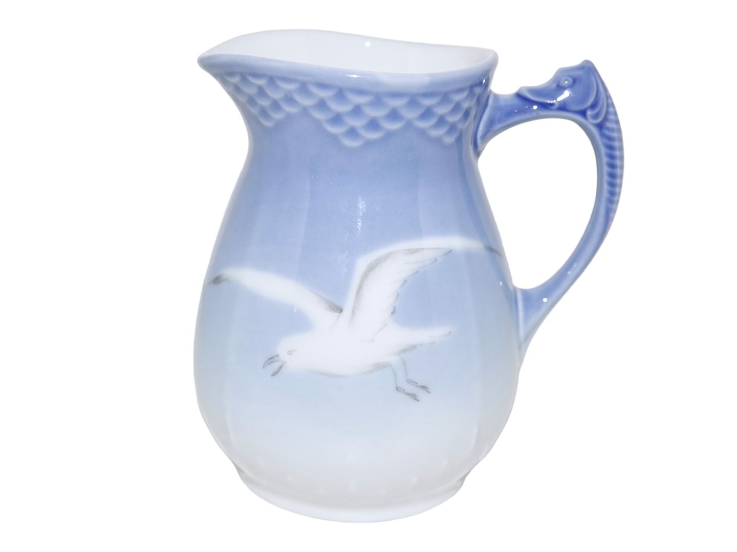 Bing & Grøndahl Måge uden guldkant, flødekande. Stemplerne viser, at denne er produceret mellem 1962 og 1970. Dekorationsnummer 189. 1. sortering. Højde 10,4. cm. Perfekt stand uden fejl.