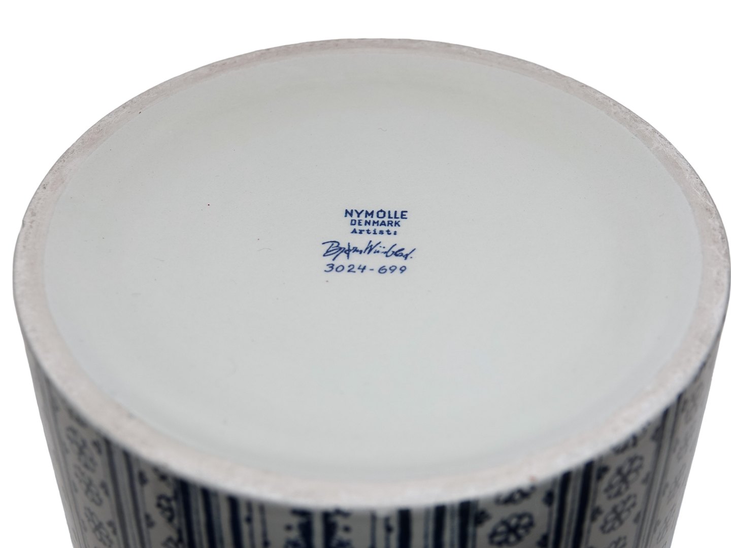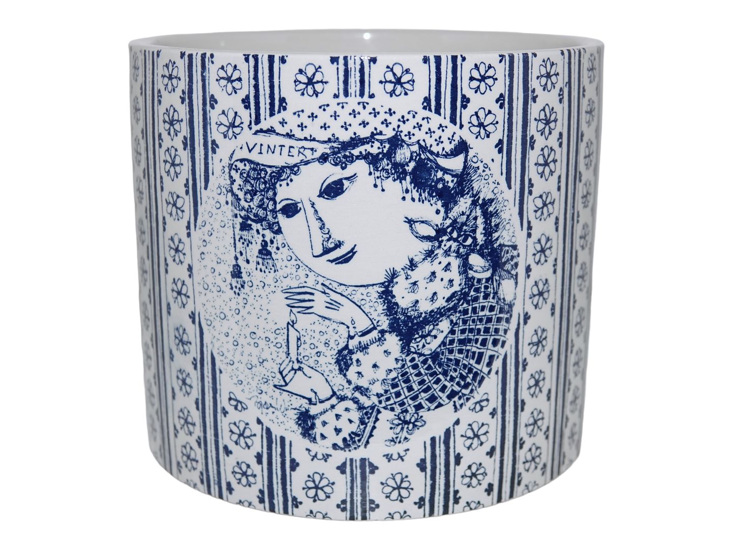 Large Bjorn Wiinblad Blue flower pot - Winter. Produced at Nymolle Pottery. Decoration number 3024-699. Diameter 14.6 cm., height 13.0 cm. Perfect condition.