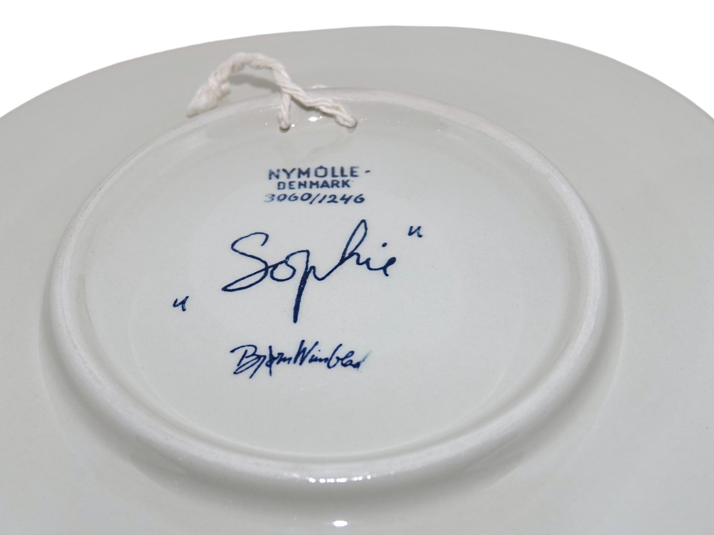 Bjorn Wiinblad, Blue Sophie plate. Made at Nymolle Pottery. Decoration number 3060-1246. Measures 18.9 by 18.9 cm. Perfect condition.