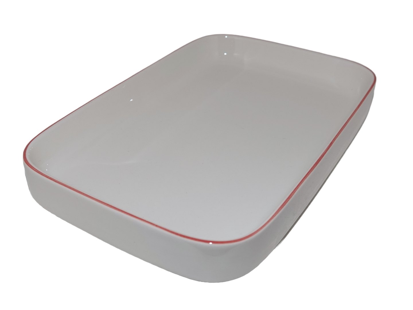 Royal Copenhagen Red Line (Red top), square platter. Designed by Grethe Meyer. Decoration number 3078. Factory first. Measures 23.7 by 14.7 cm. Perfect condition with no chips, cracks or repairs.