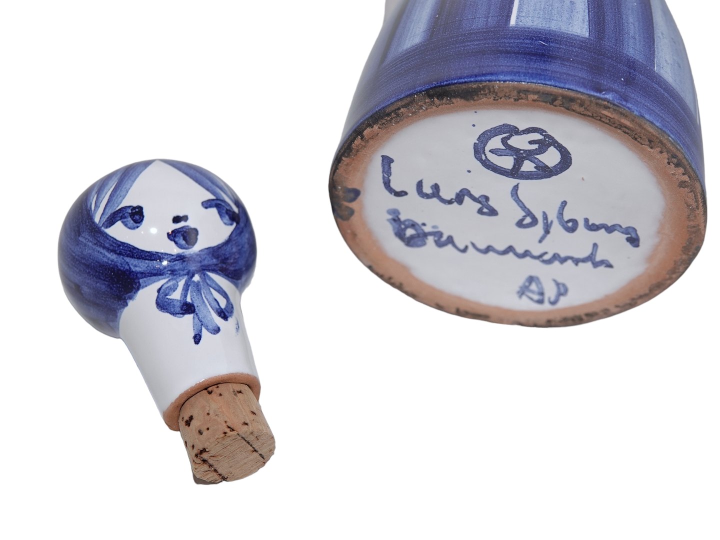Lars Syberg art pottery, blue figurine with room for salt in front and pepper in top.
