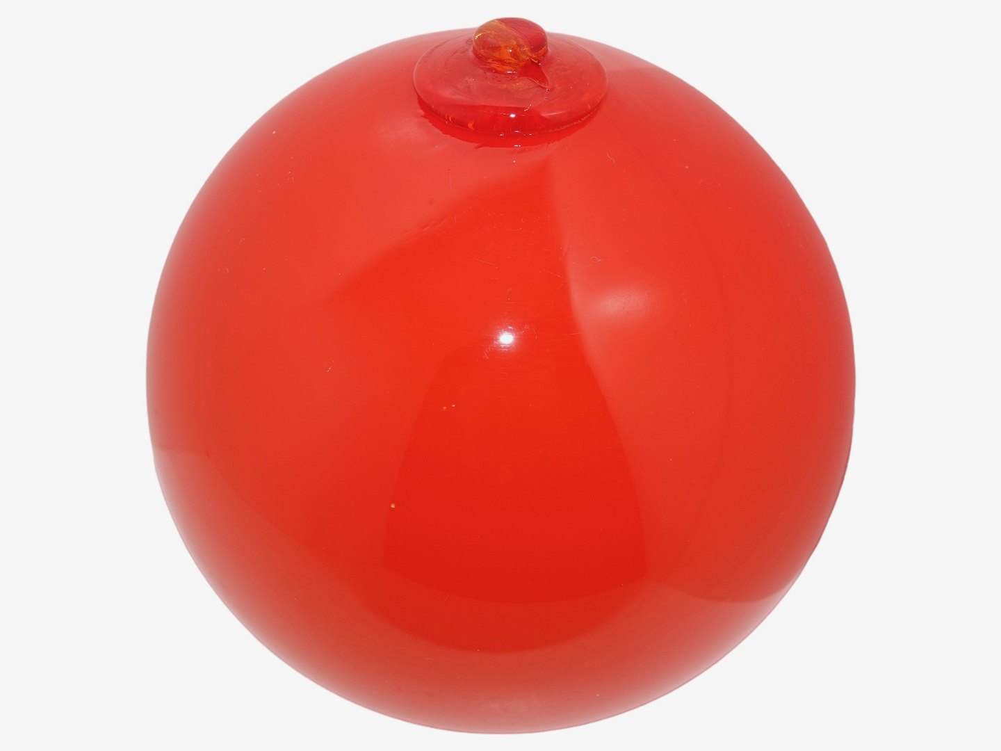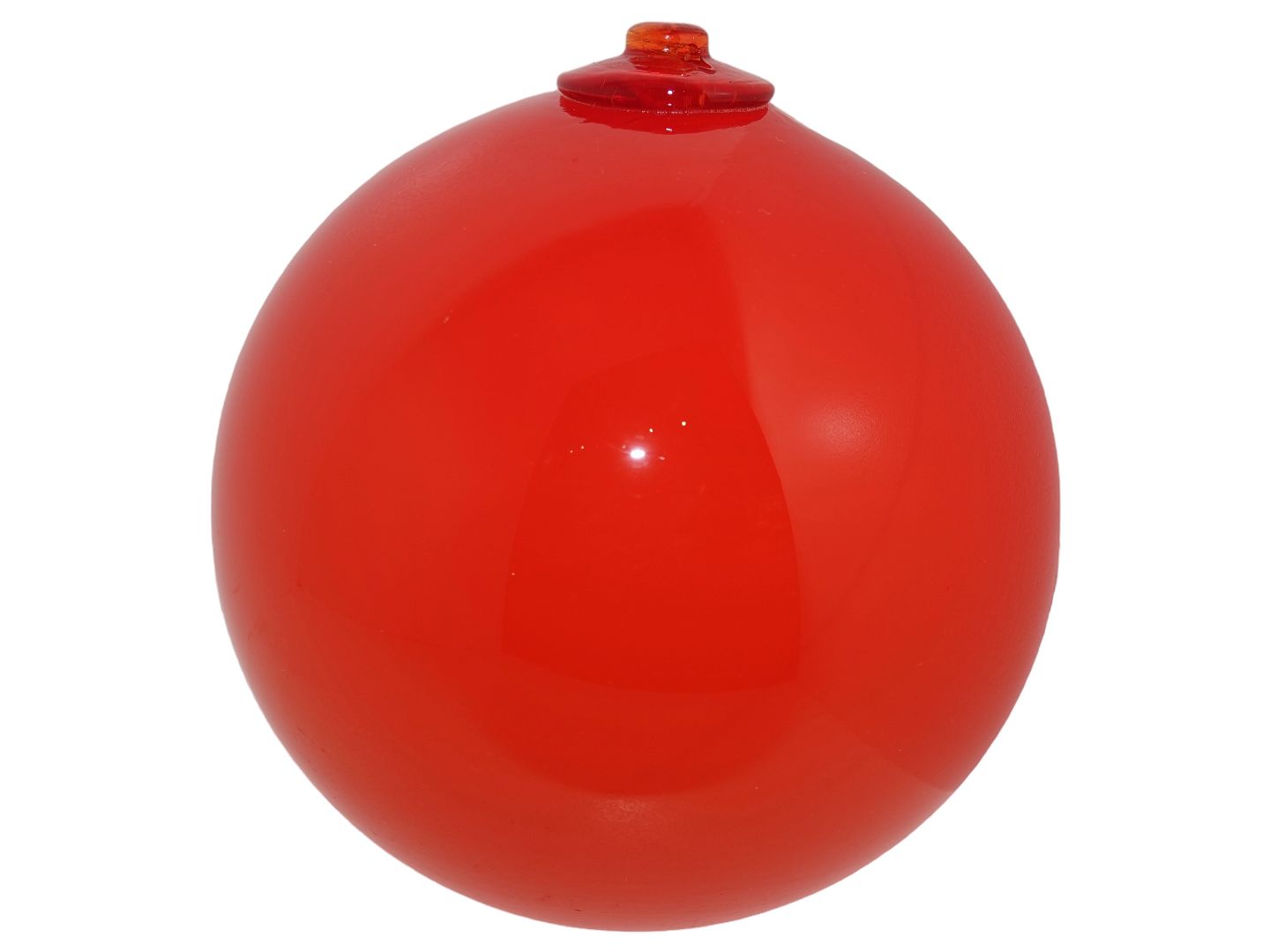 Odense Glasværk - Holmegaard stor orangerød kugle med øksen til ophæng eller til at komme i toppen af en vase som en prop.