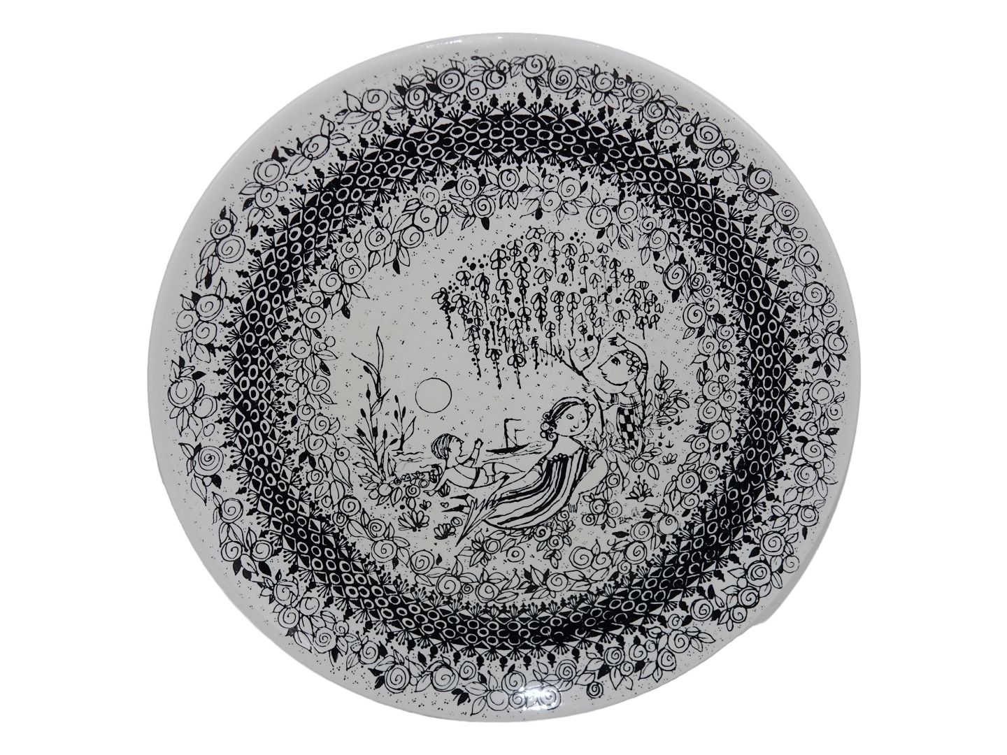 Sort Bjørn Wiinblad De Fire Årstider platte, Sommer. Produceret hos Nymølle Keramik. Dekorationsnummer 3052-1278. Diameter 27,0 cm. Perfekt stand.