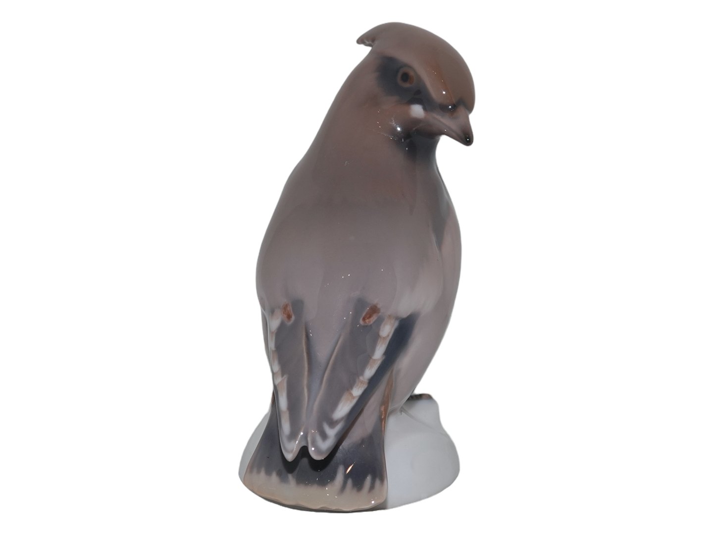 Sjælden Bing & Grøndahl fuglefigur, silkehale. Af fabriksmærket ses det, at denne er produceret mellem 1915 og 1948. Dekorationsnummer 1730. 1. sortering. Højde 13,0 cm. Perfekt stand uden fejl.