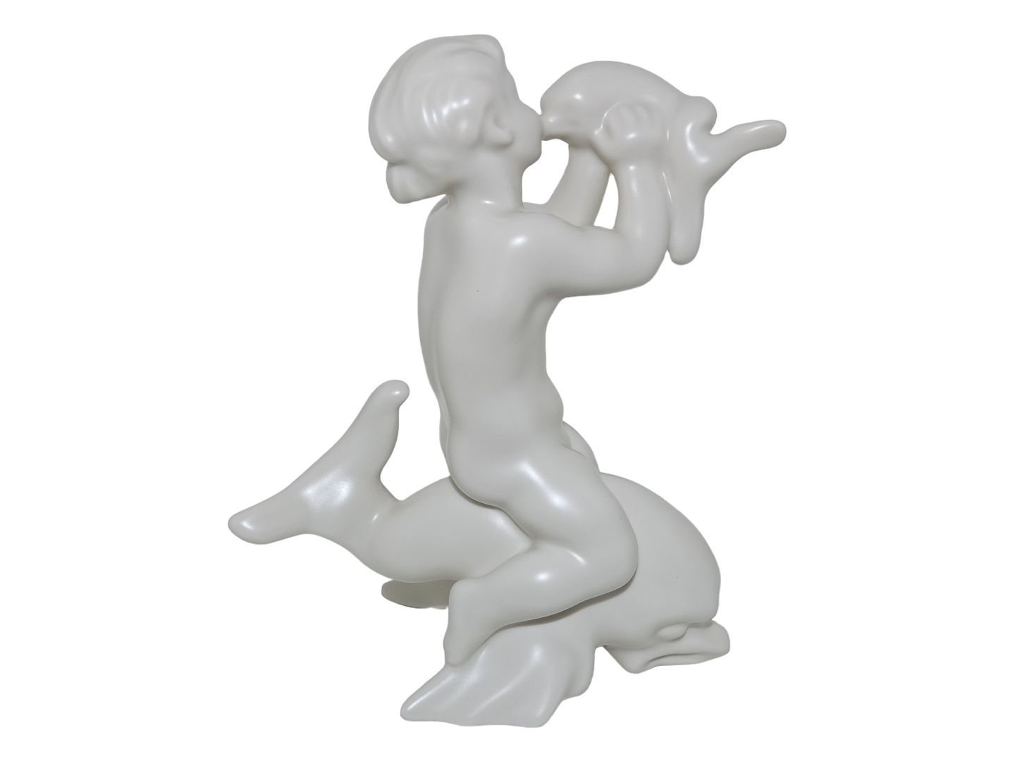 Bing & Grøndahl hvid figur, dreng med delfin udført med mat glasur.