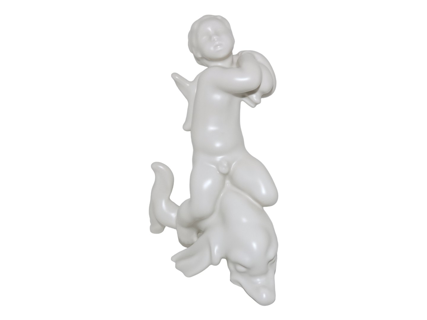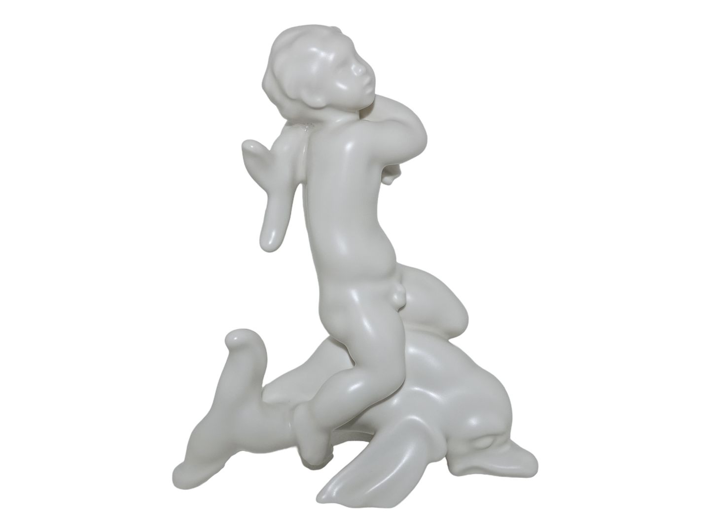 Bing & Grøndahl hvid figur, dreng med delfin udført med mat glasur.