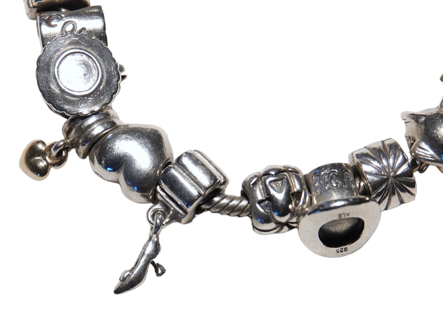 Pandora silver, Bracelet with 14 charms - two small one are in gold and some of the silver one have also a little gold on them.